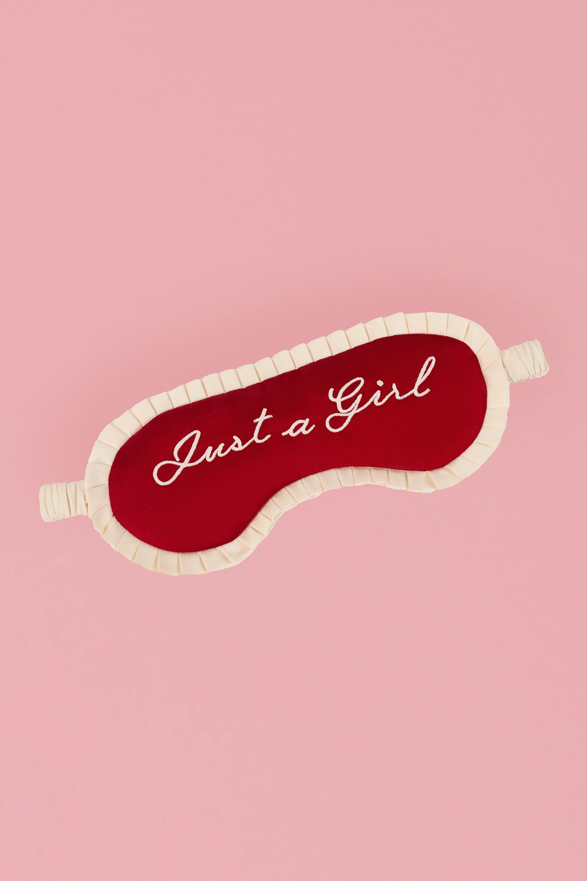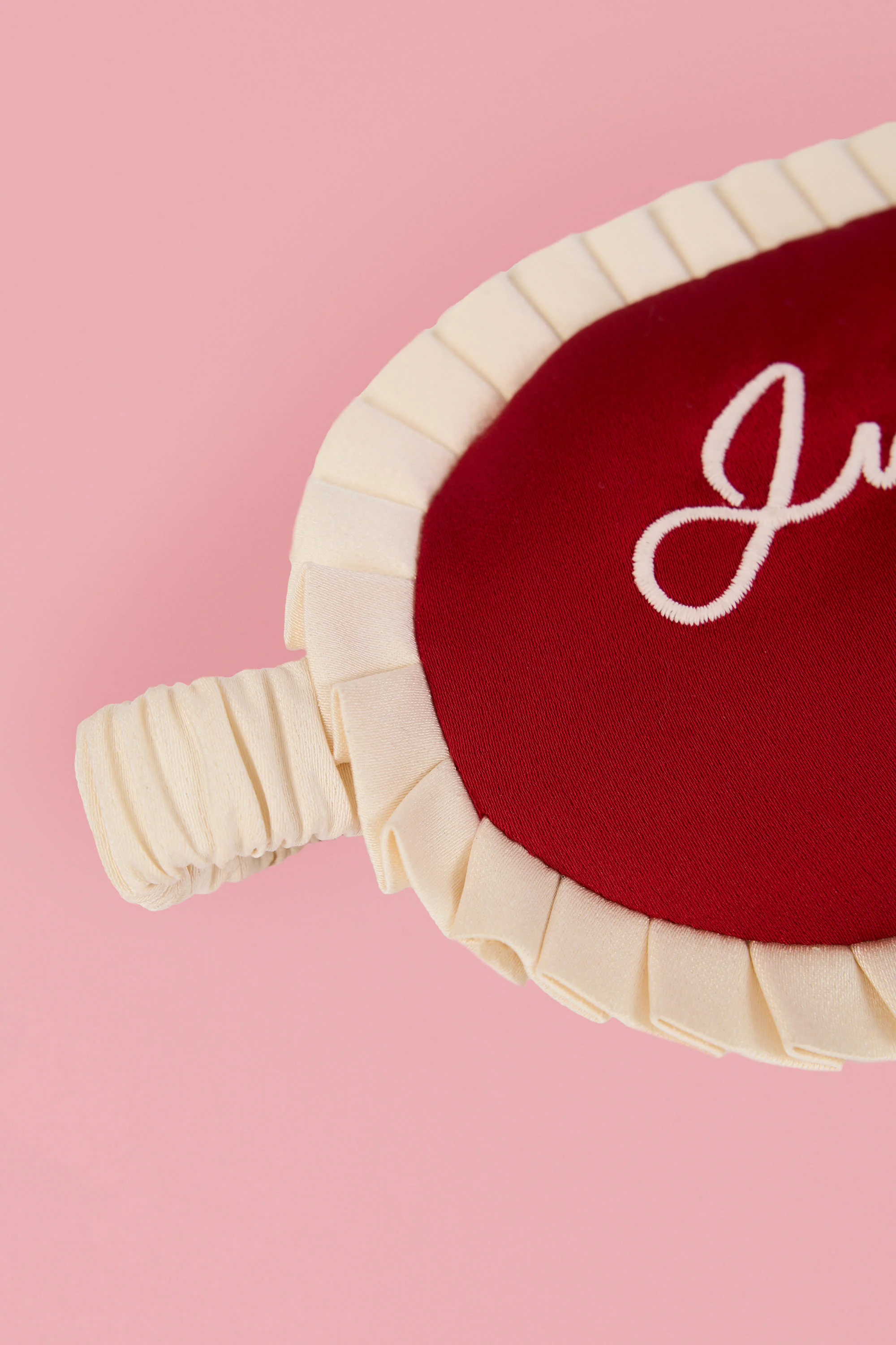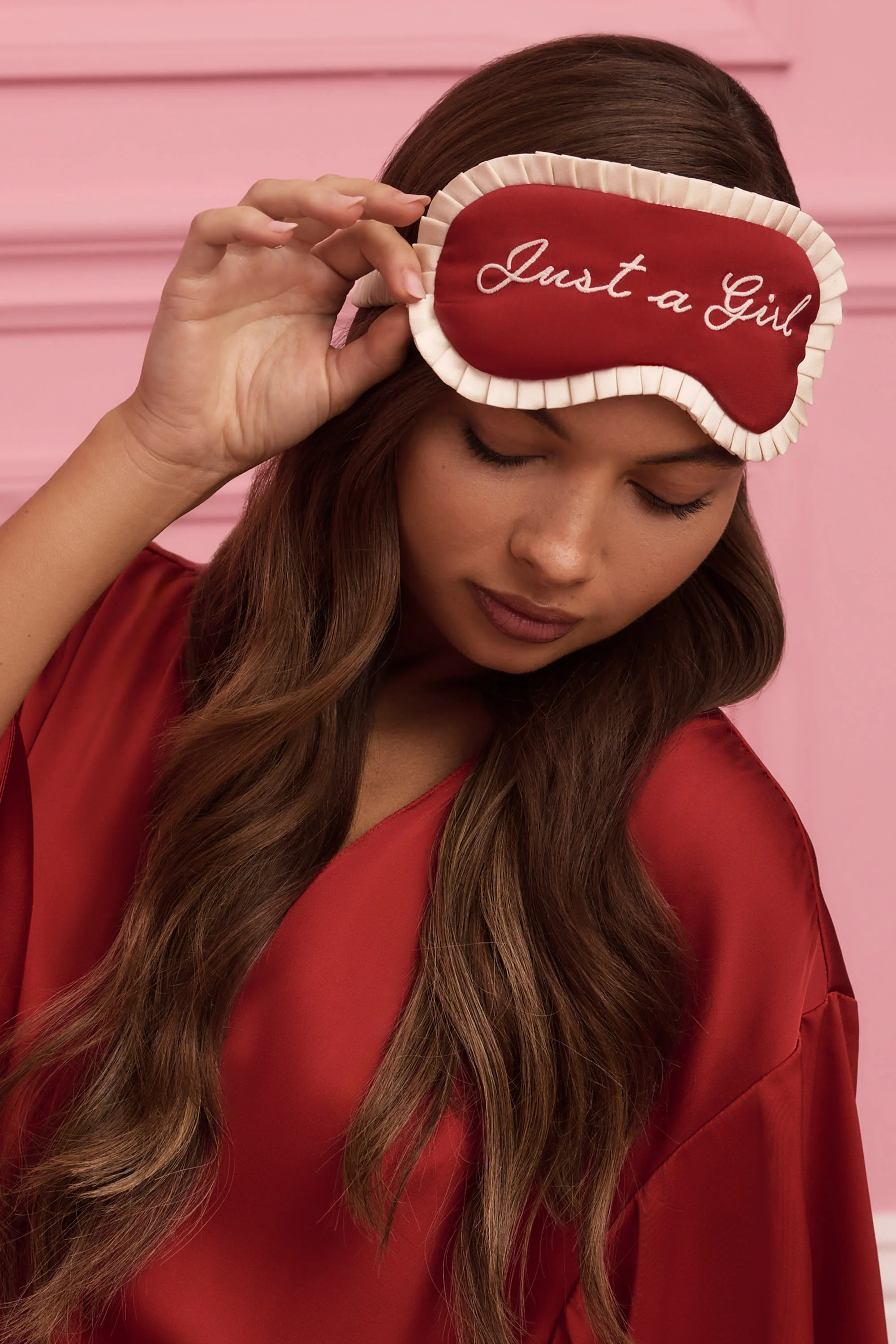 Ruffle-Trim Embroidered Eye Mask in Ruby Red