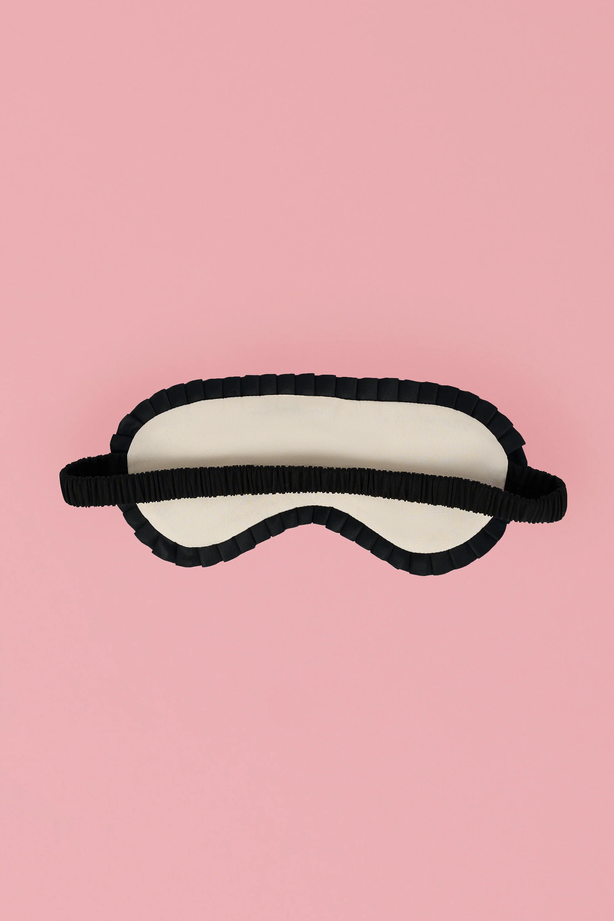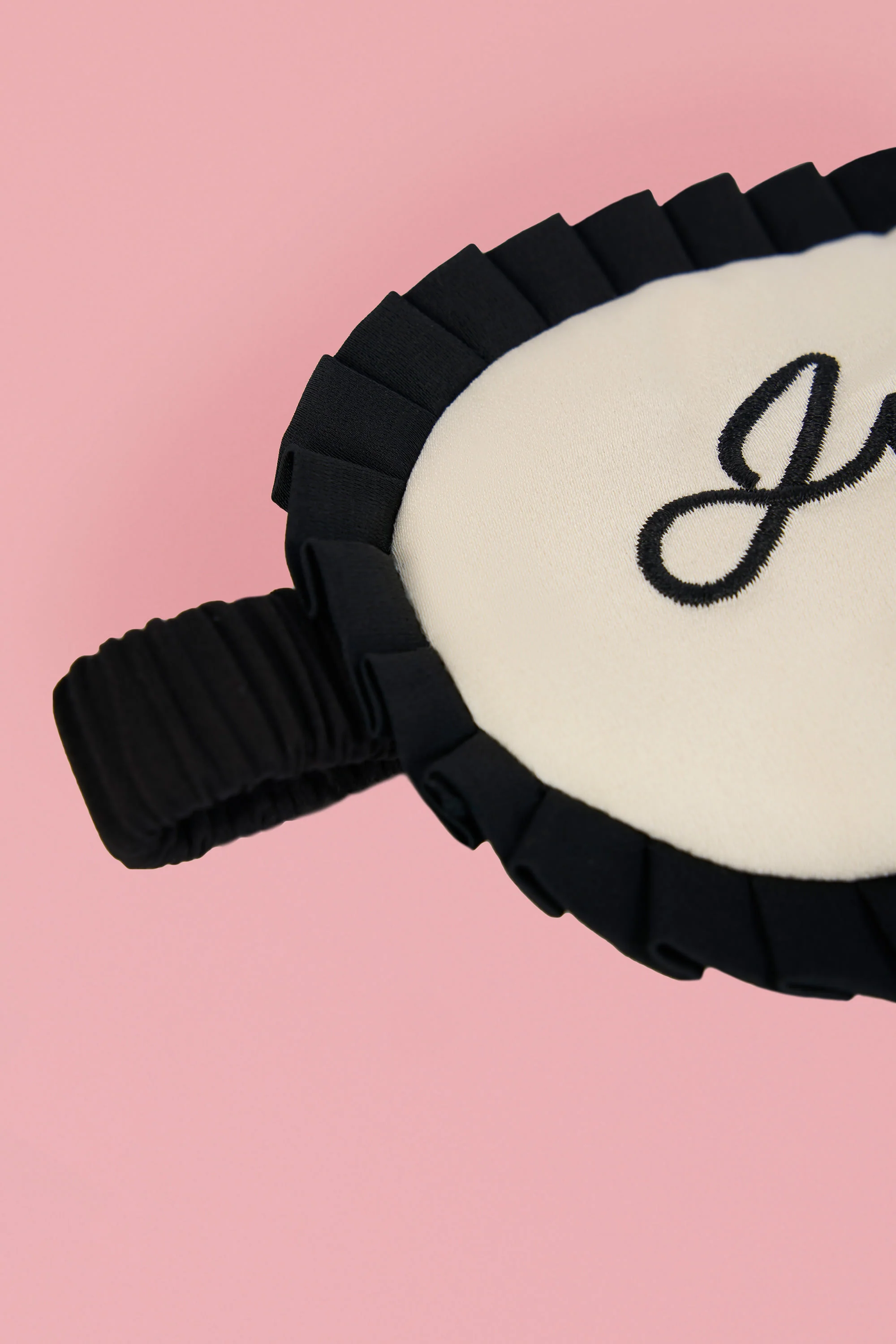Ruffle-Trim Embroidered Eye Mask in Ivory