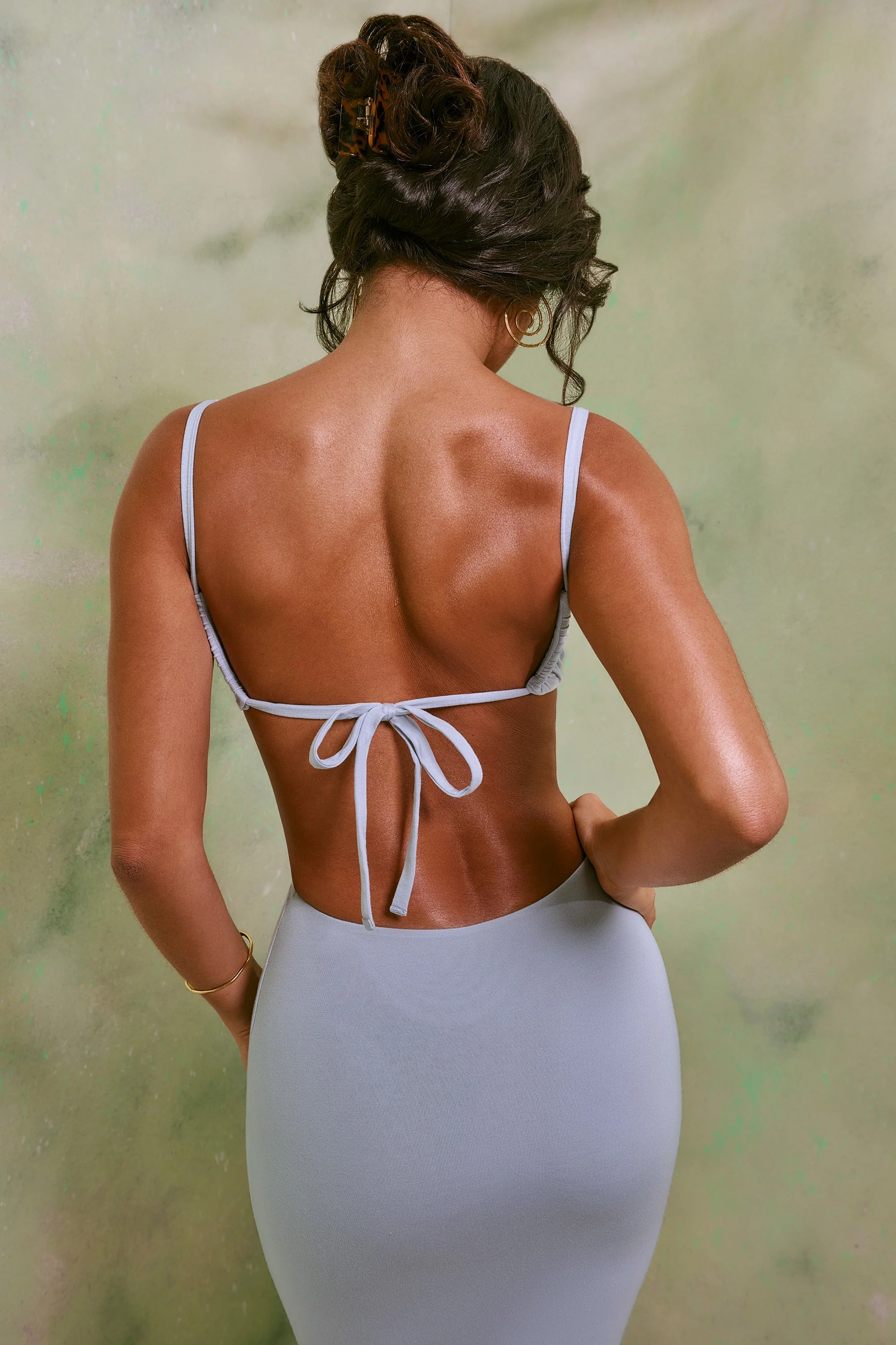 Cross Halter Neckline Low Back Mini Dress in Pastel Green