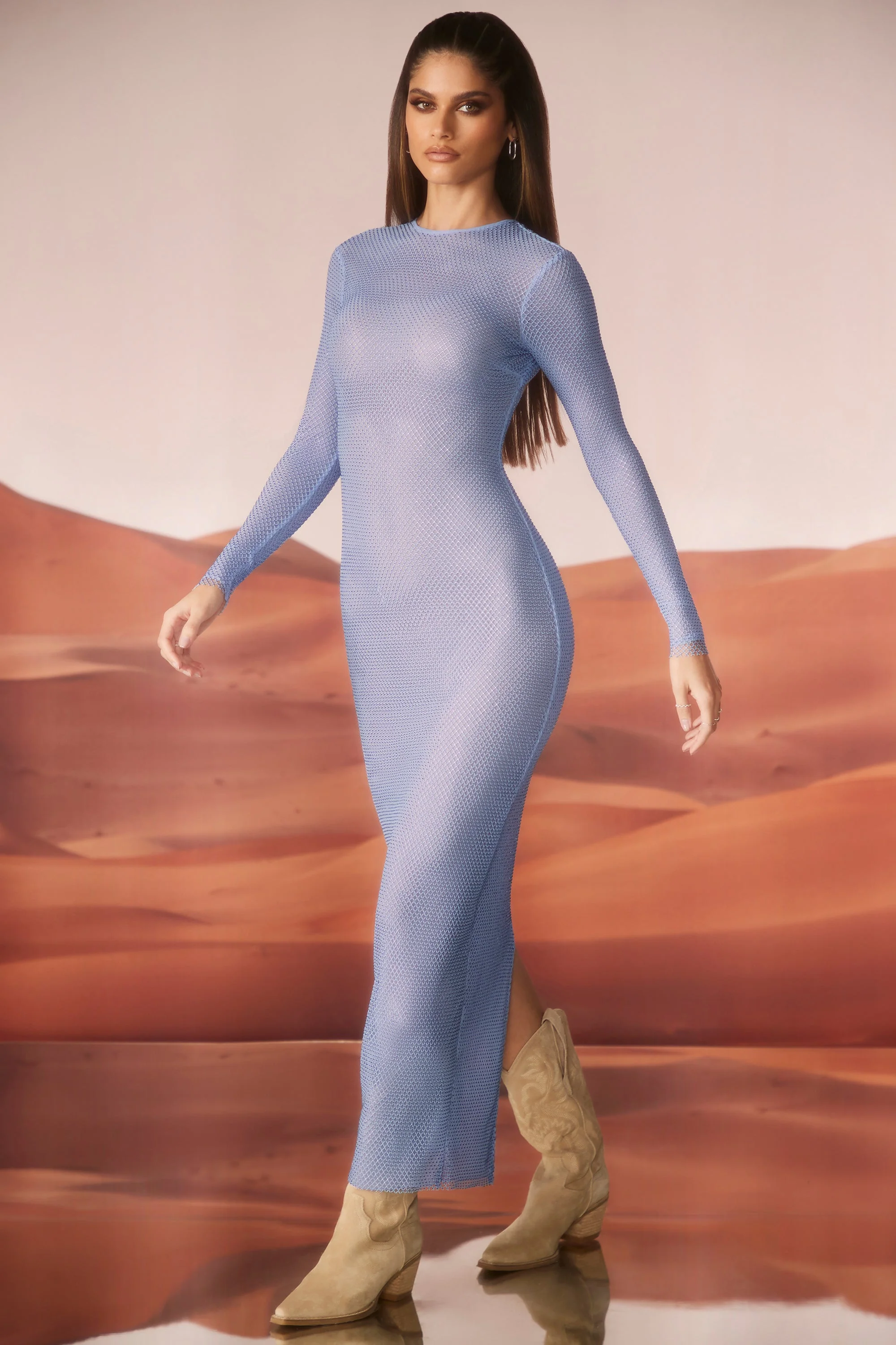 Embellished Long Sleeve Backless Mini Dress in Blue