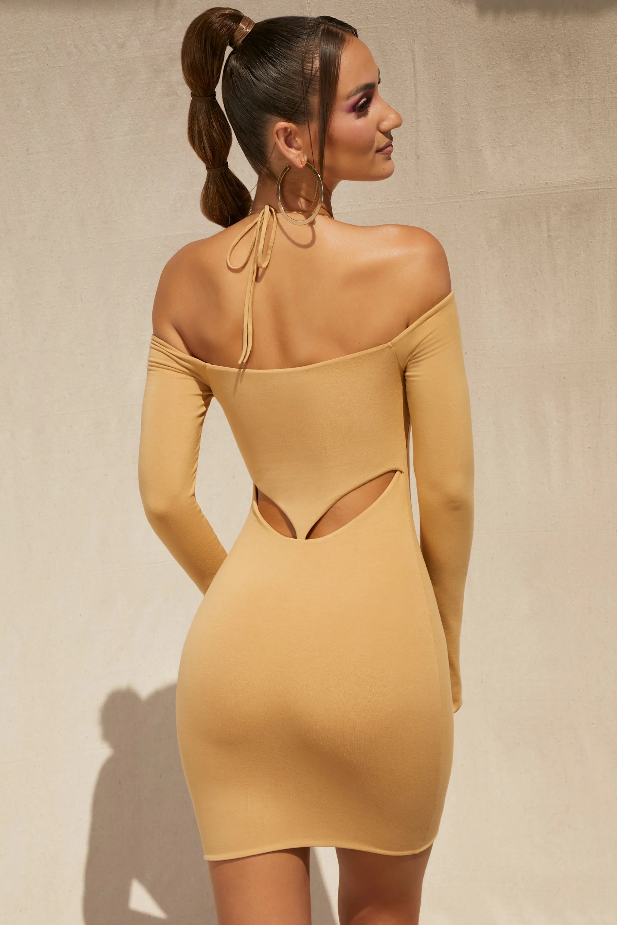 Ruched Cut Out Sides Long Sleeve Mini Dress in Black
