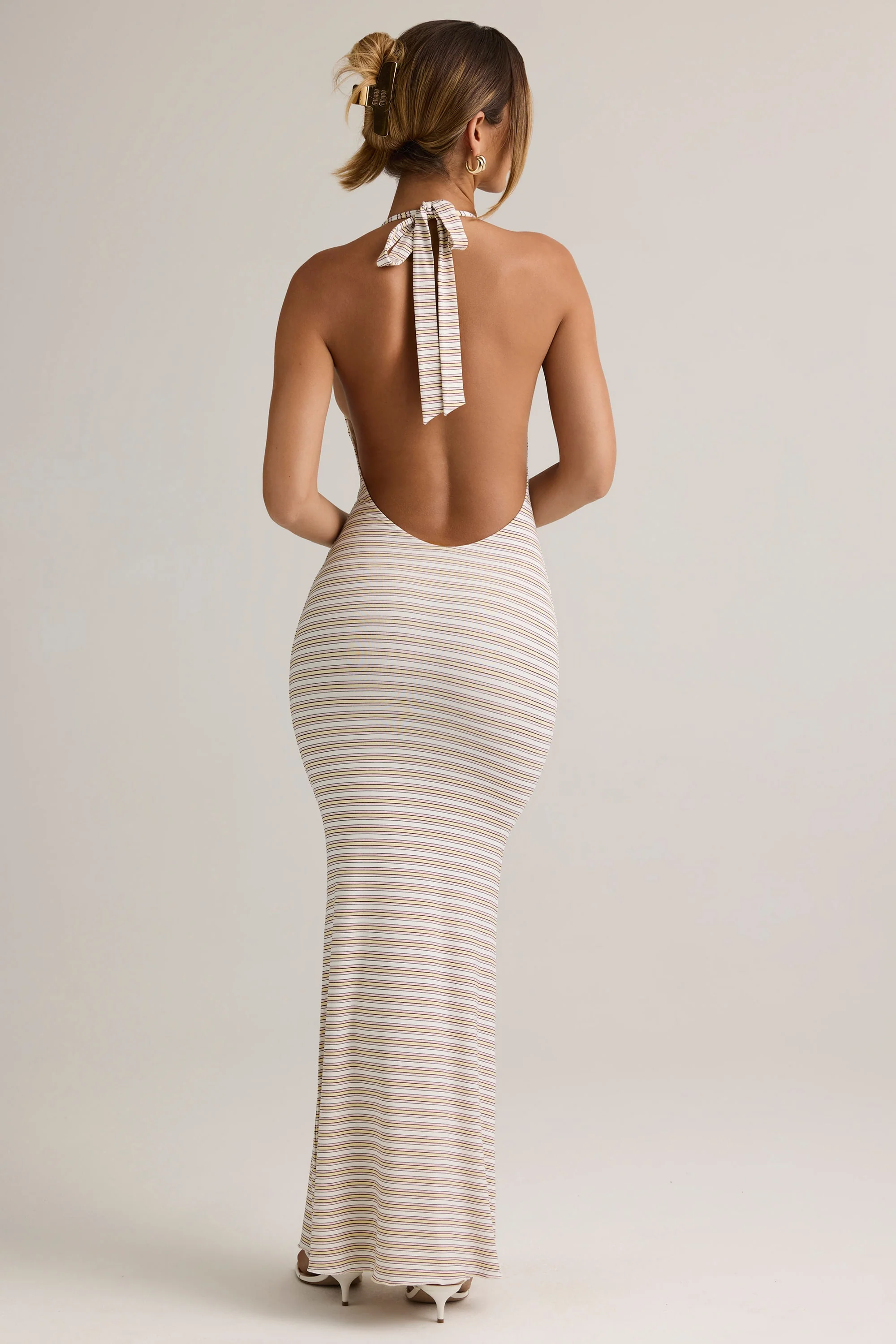 Modal Backless Halterneck Maxi Dress in Pink & Yellow Stripe