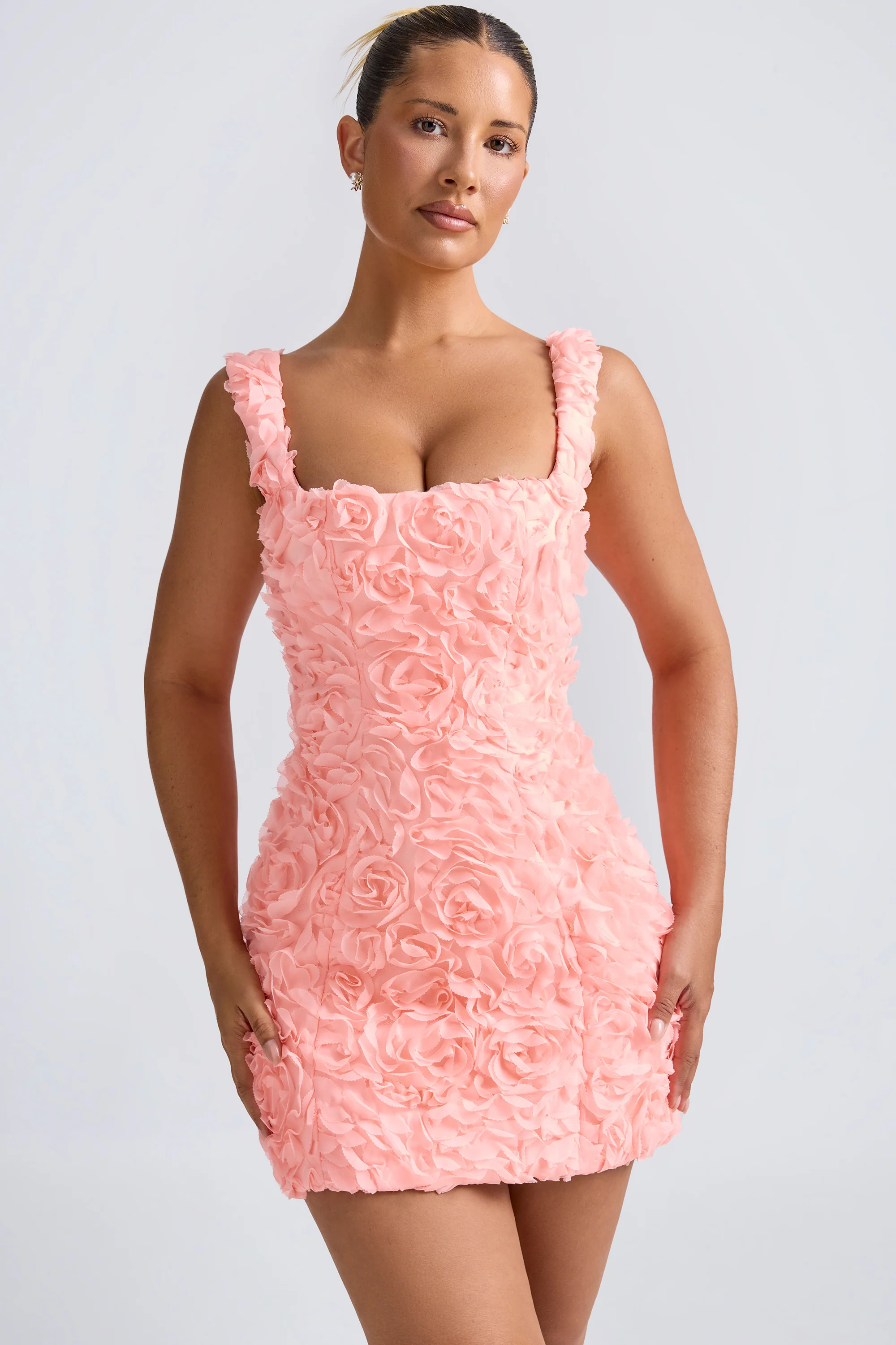 Floral-Appliqué Bandeau A-Line Mini Dress in Coral
