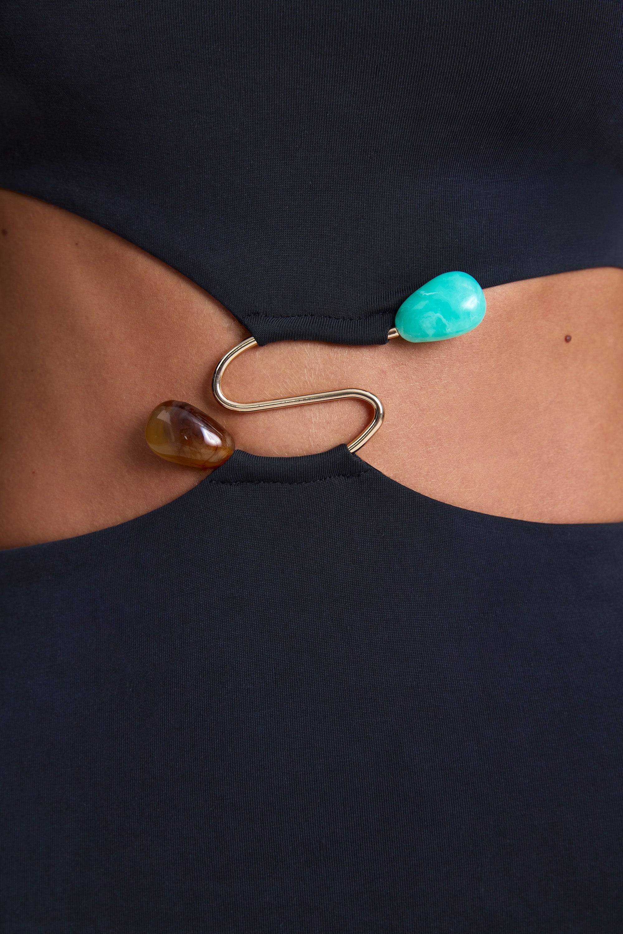 Embellished Cut-Out Asymmetric Midaxi Dress in Black