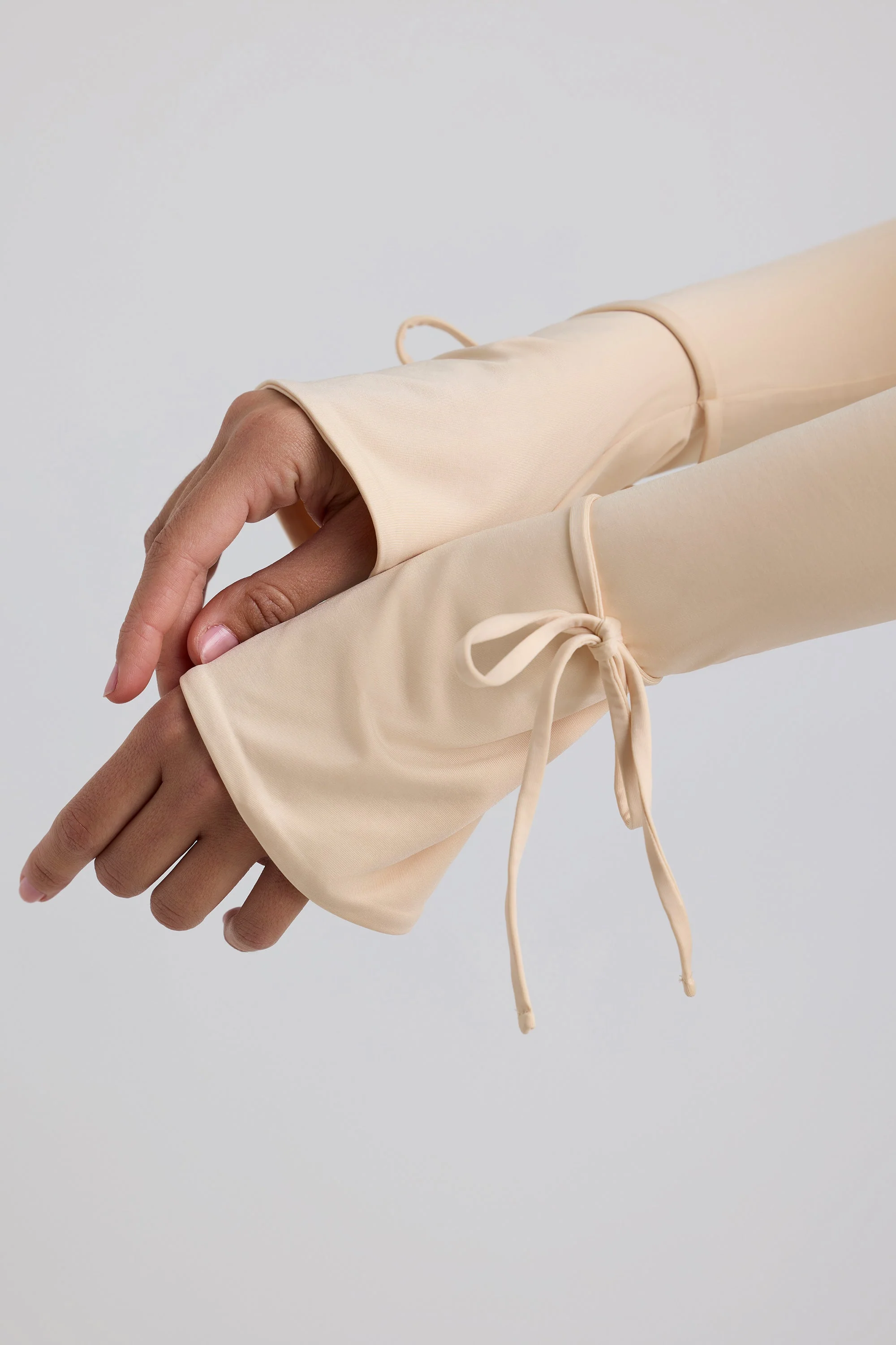 Slinky Jersey Ruched V-Back Mini Dress in Buttercream