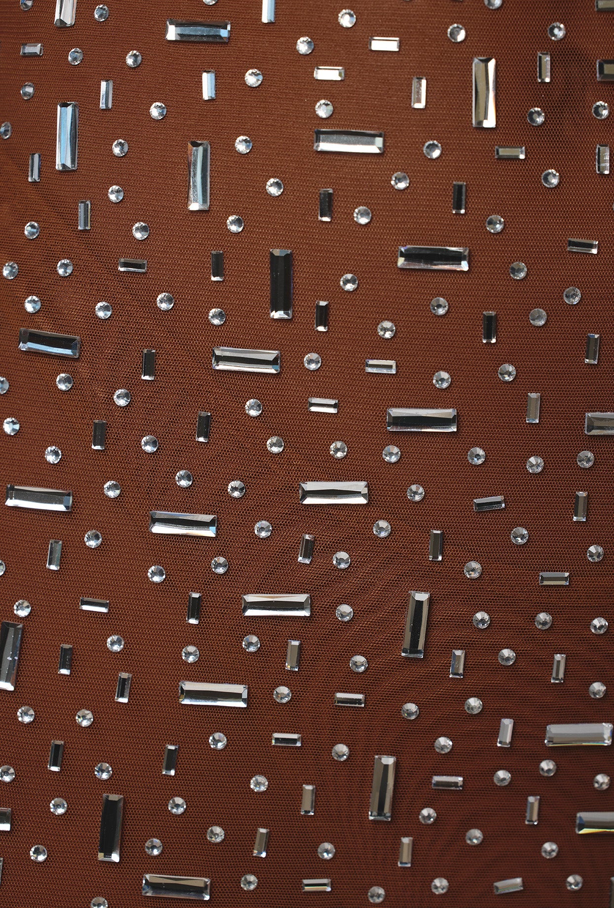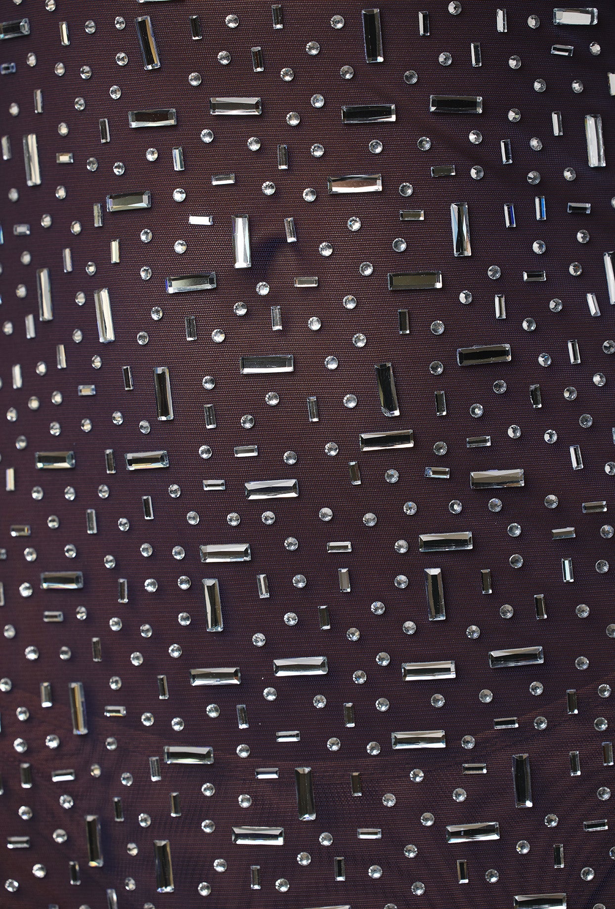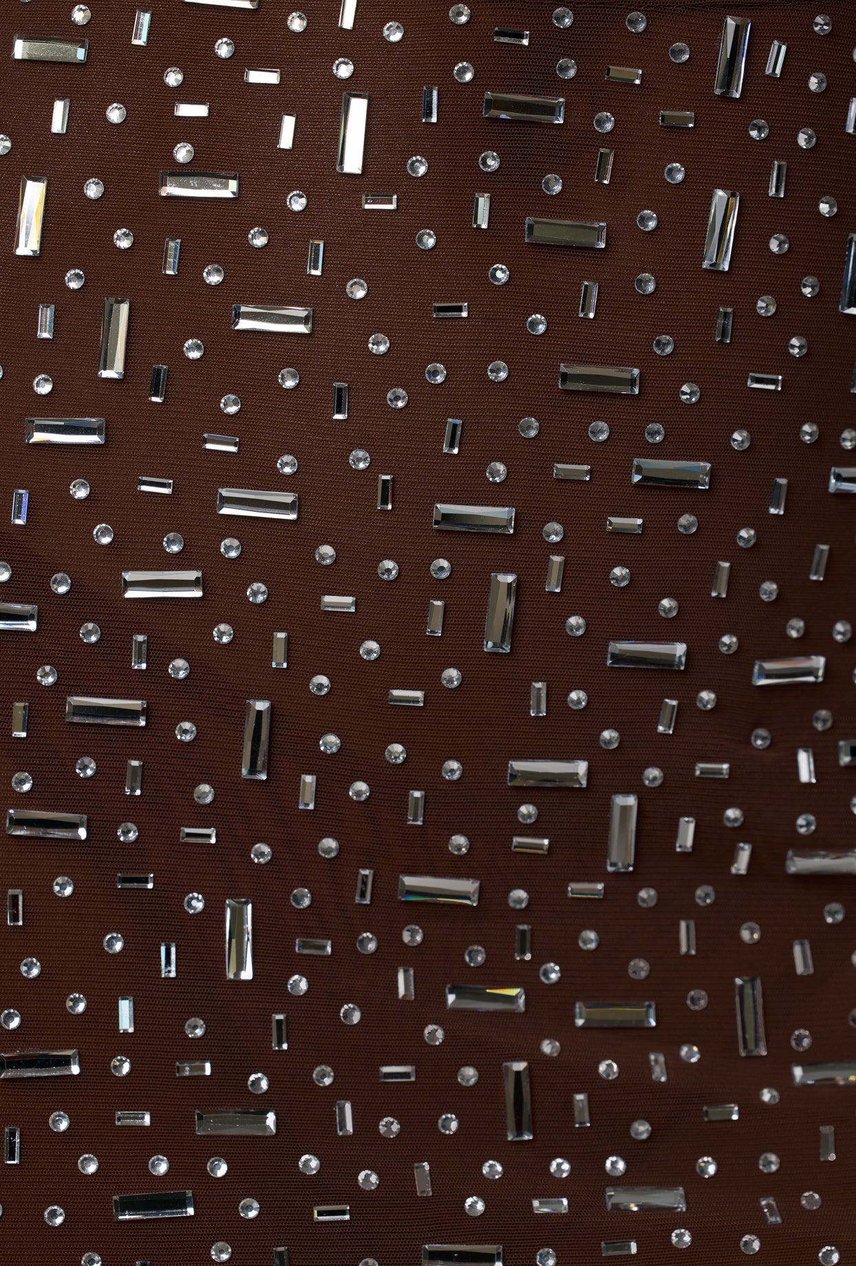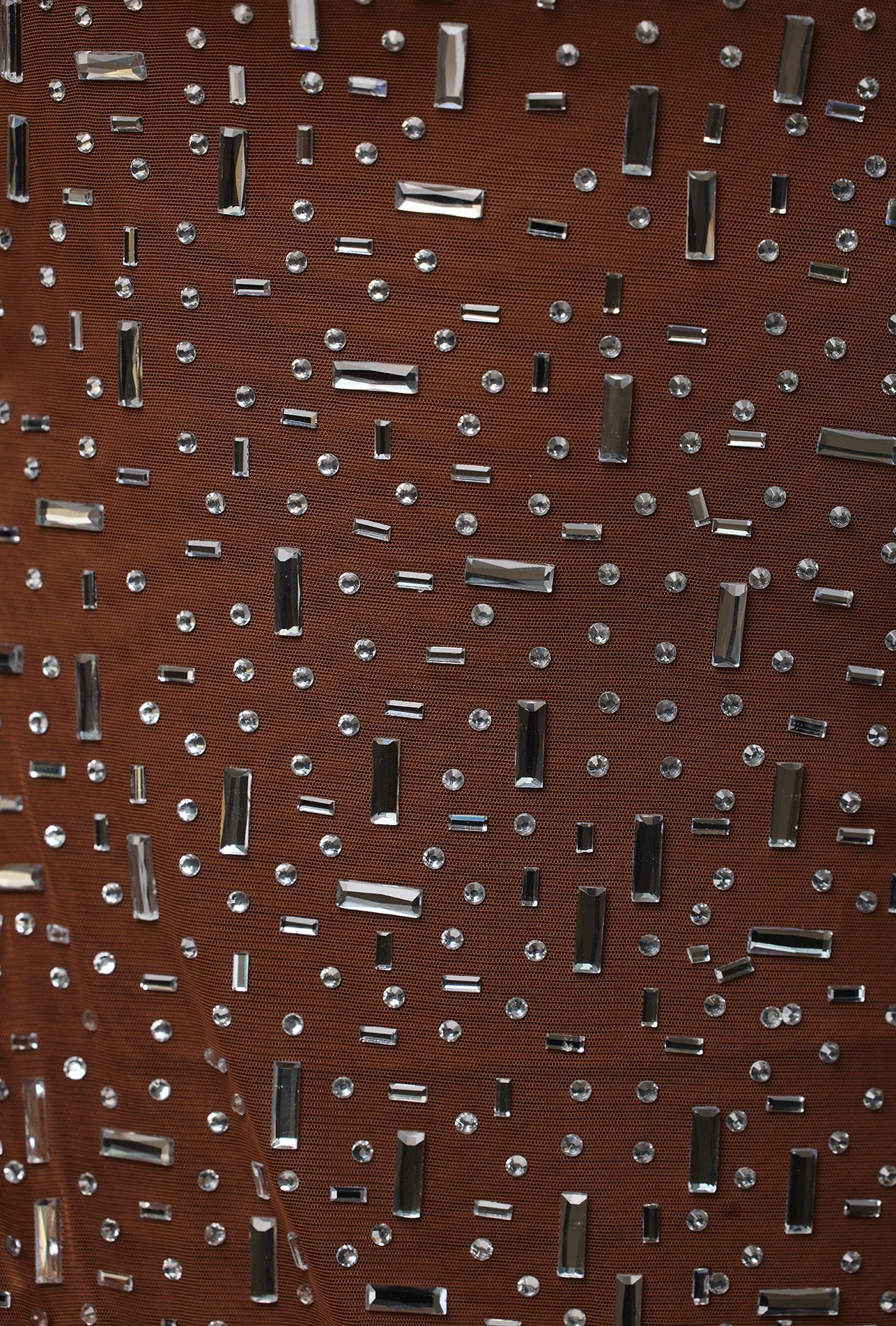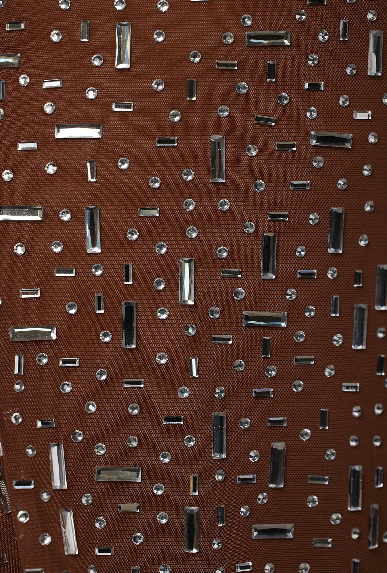 Sheer Embellished Bodycon Mini Dress in Deep Cocoa
