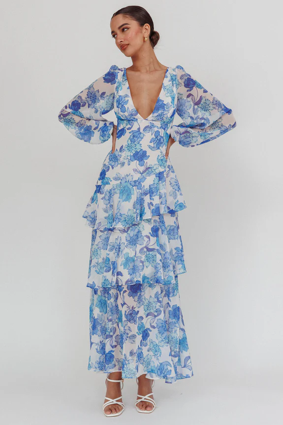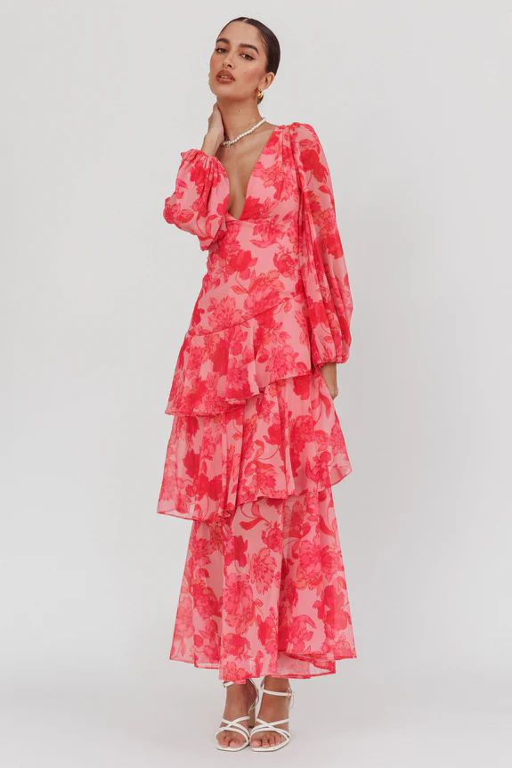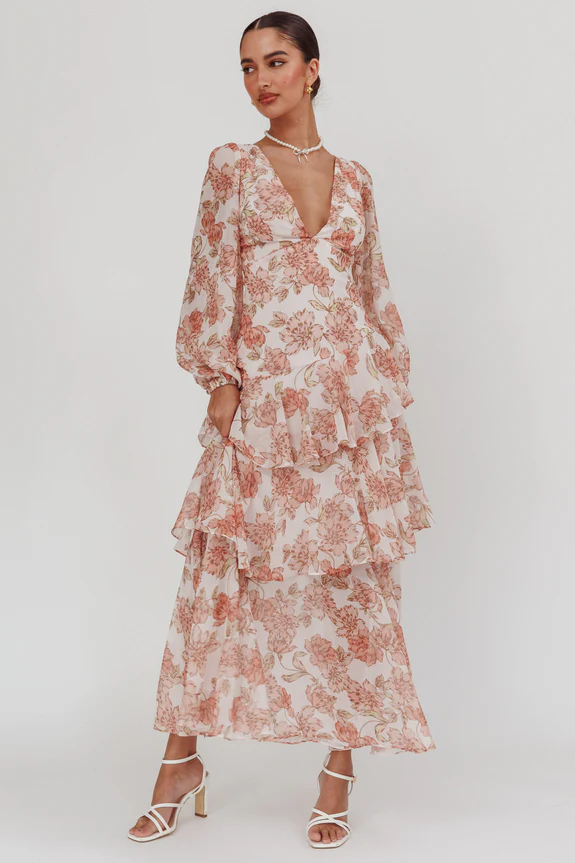 Veda Long Sleeve Floral Tiered Ruffle Maxi Dress