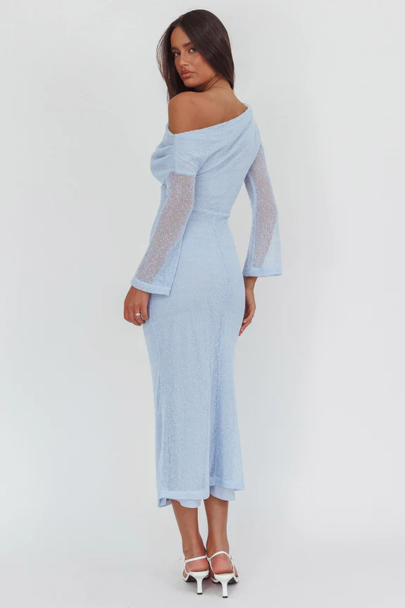 Demure Long Sleeve Open Back Dress Sequin Grey/Silver