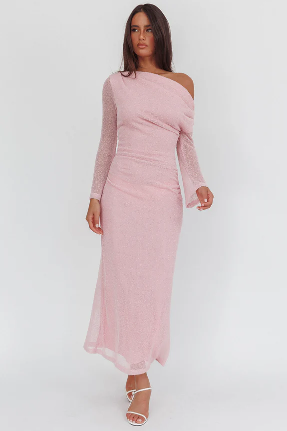 Alivya Asymmetric Neckline Knit Maxi Dress
