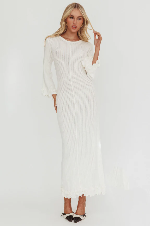 Wrenna Bell Sleeve Knit Maxi Dress White