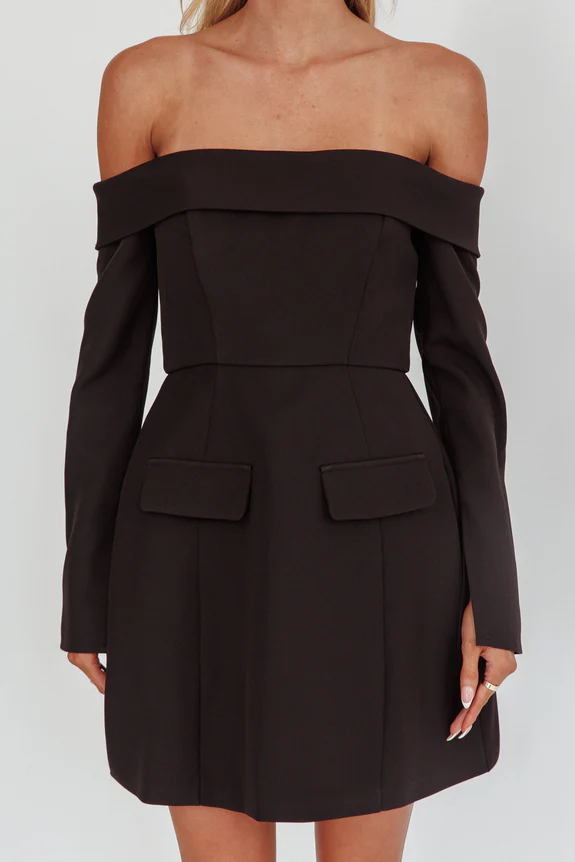 Cha Cha Long Sleeve Thigh Split Dress Black