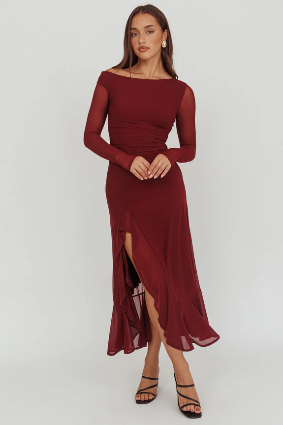 Moonlit Magic Long Sleeve Maxi Dress Wine