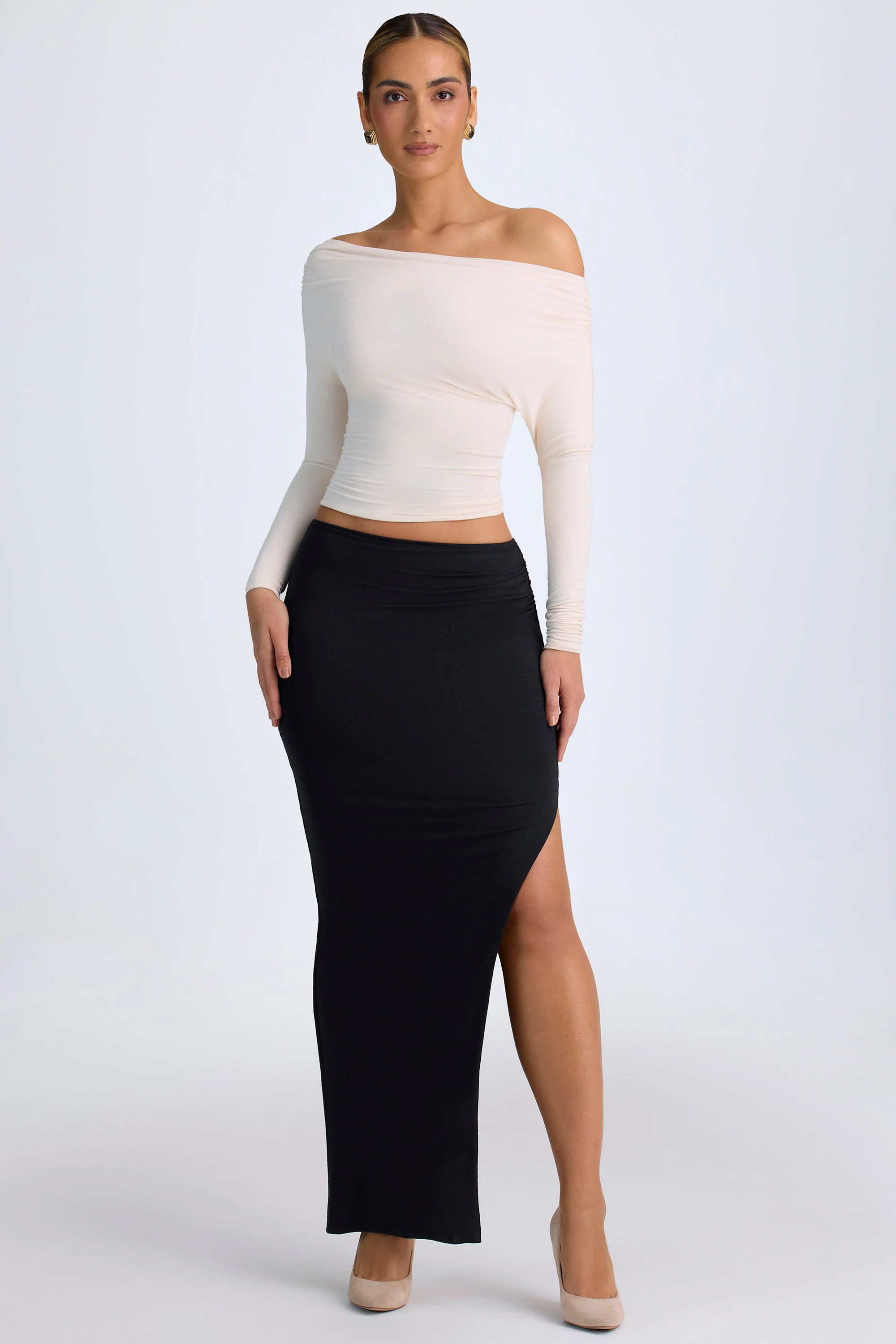 Modal Off-Shoulder Ruched Bodysuit in Black