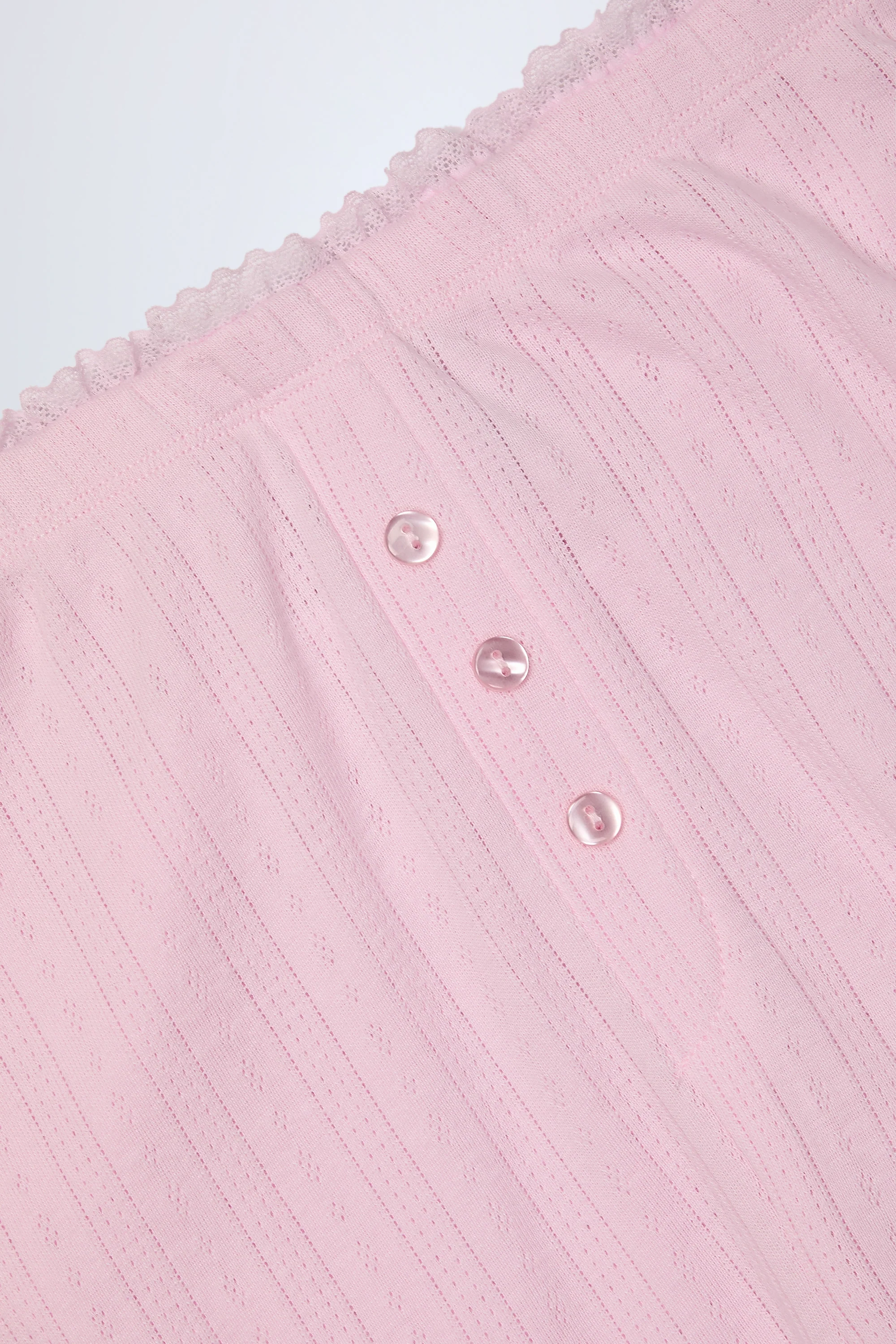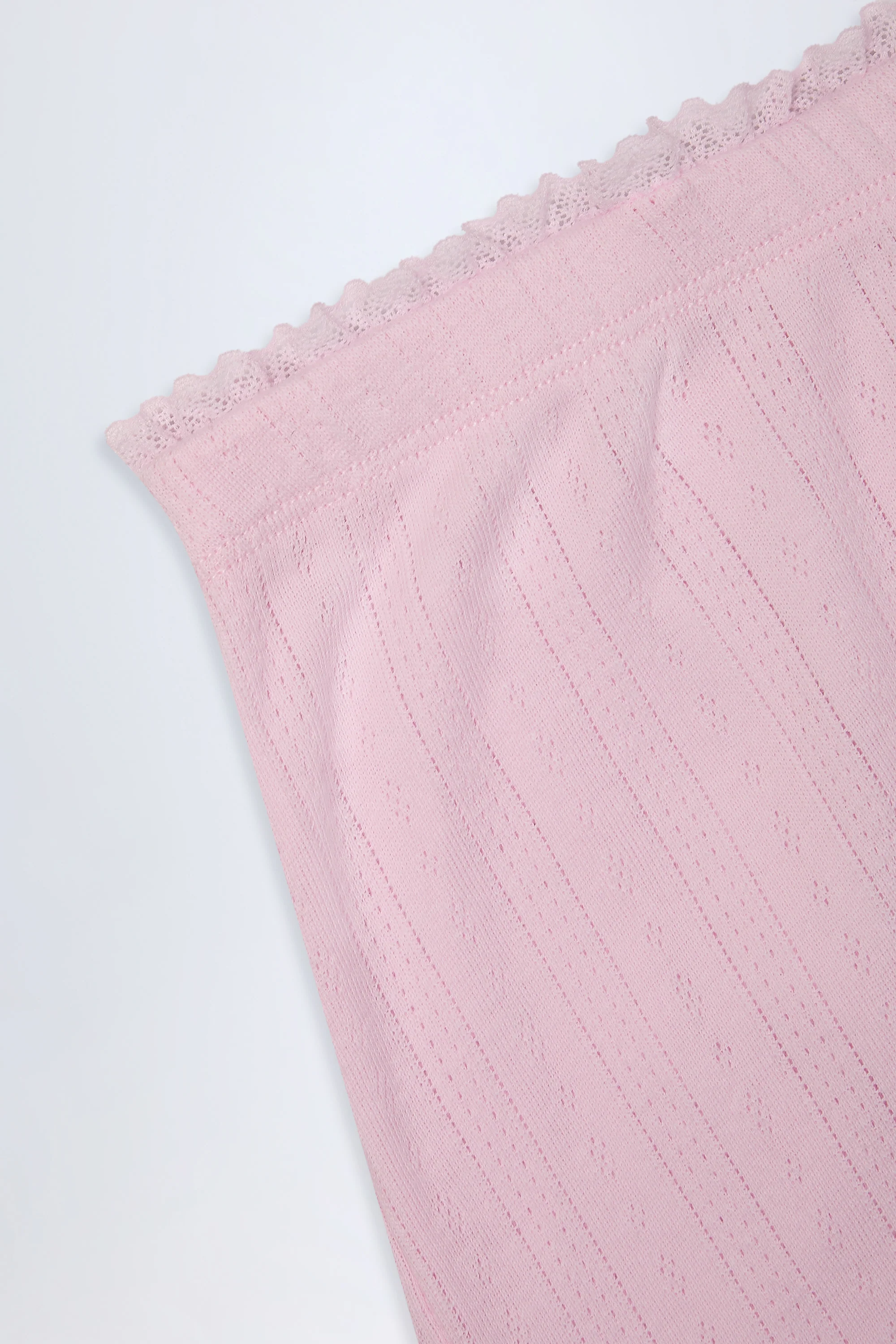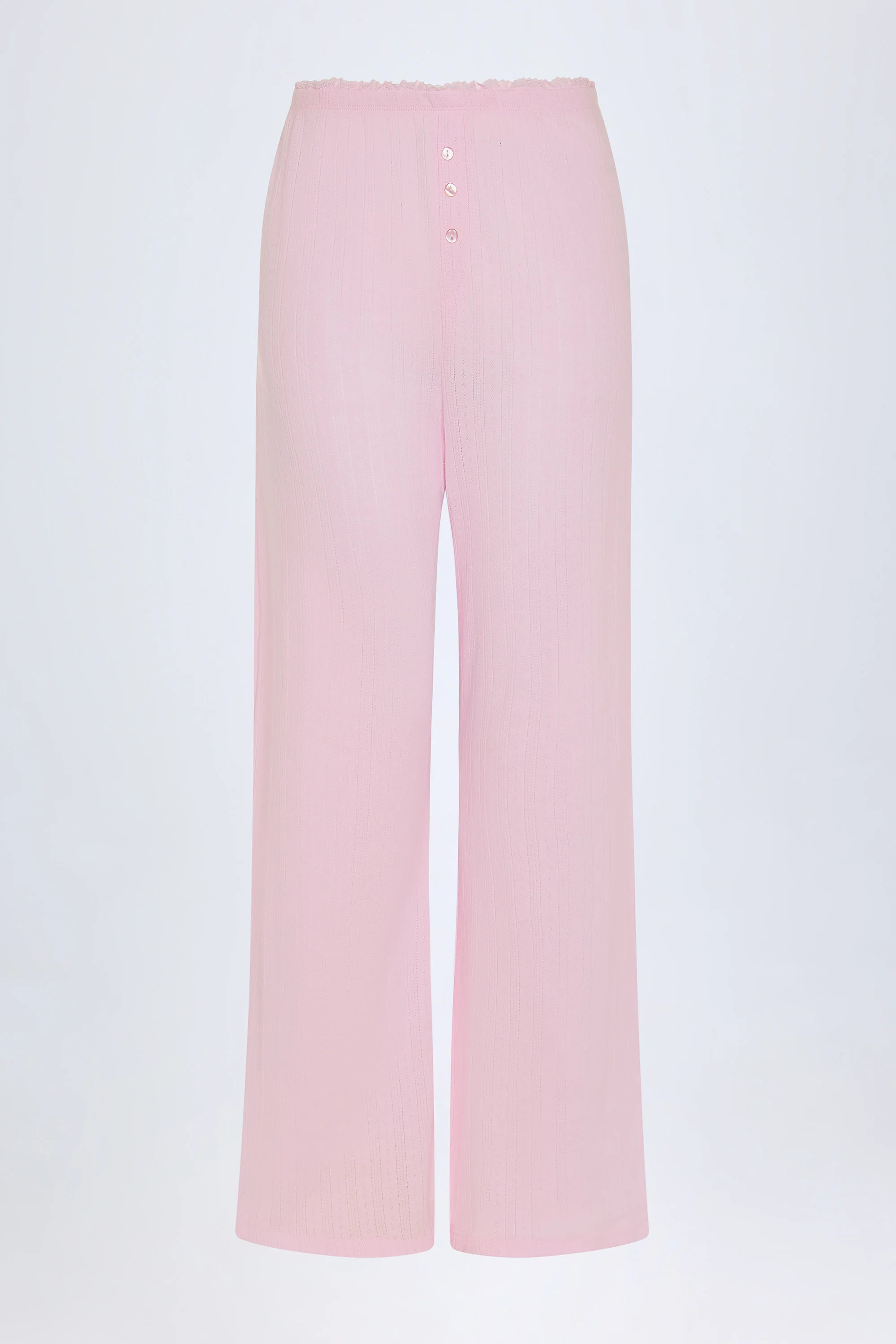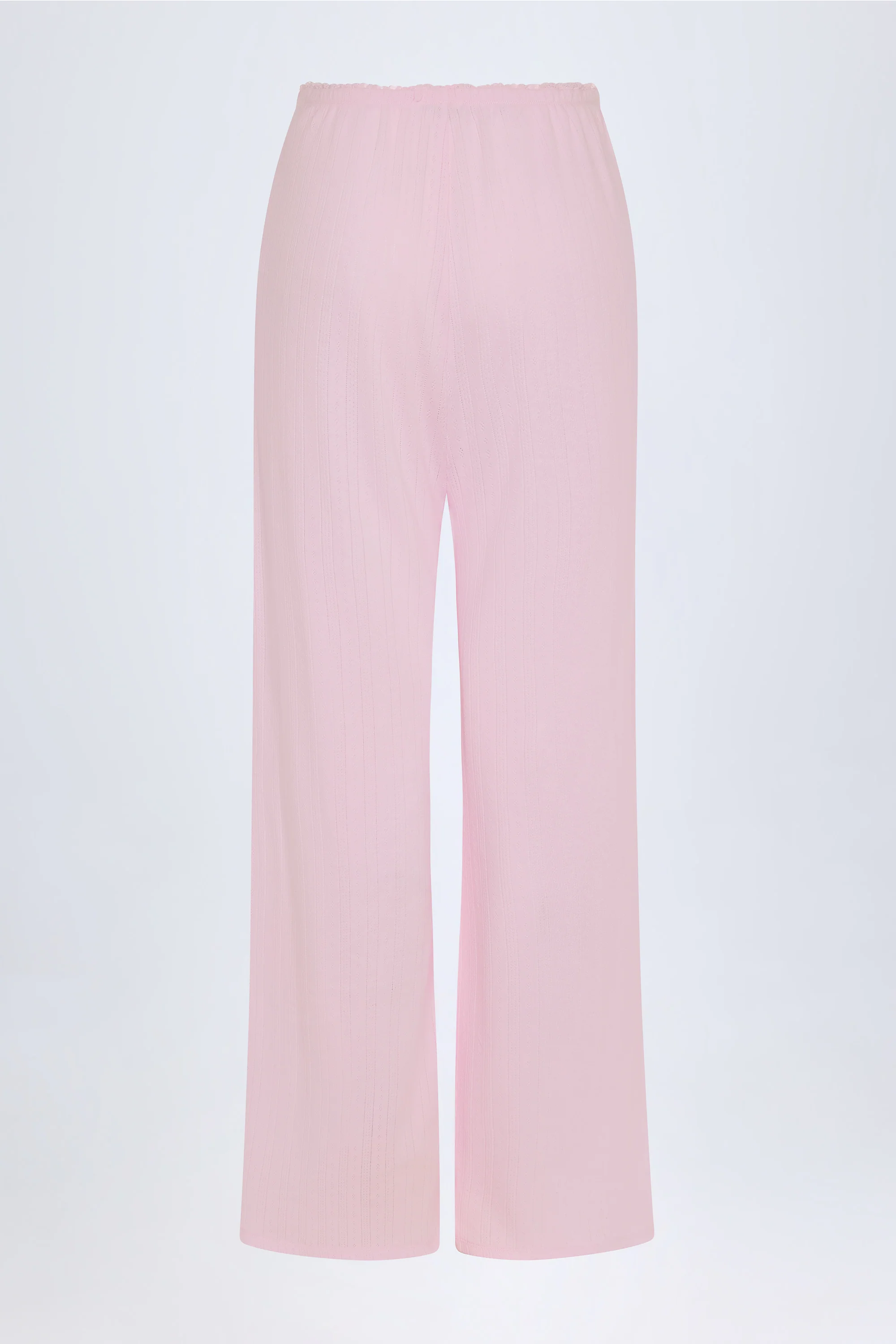 Pointelle Mid-Rise Straight-Leg Trousers in Baby Pink