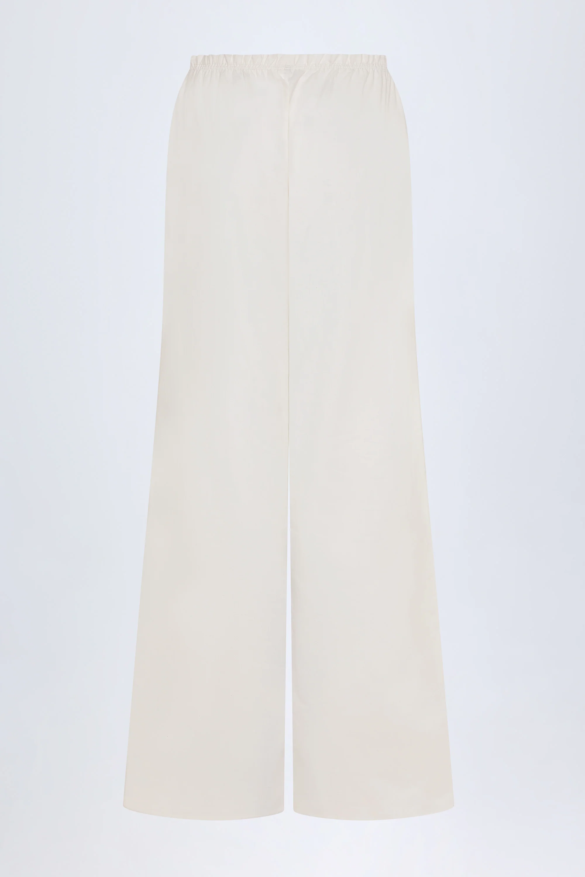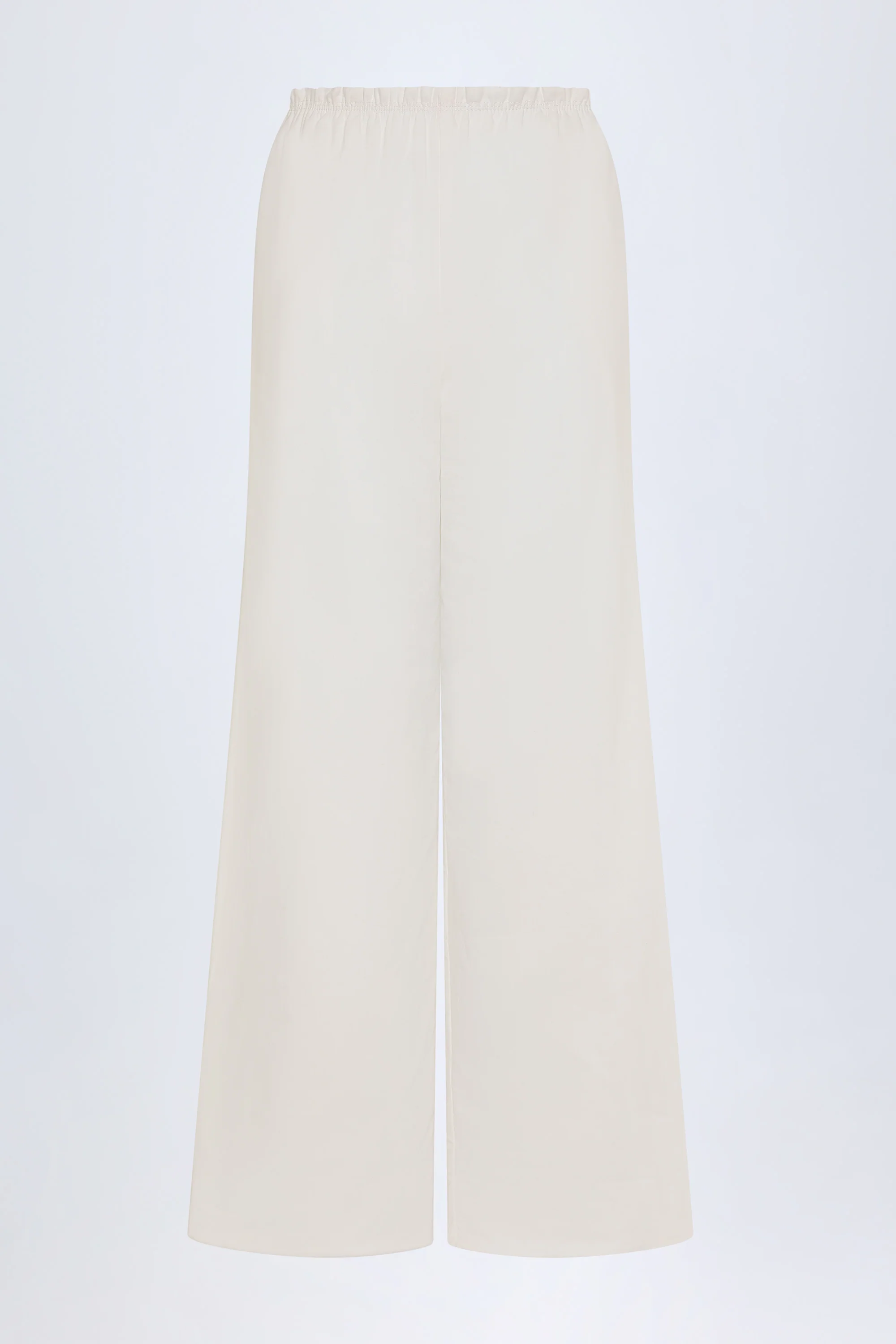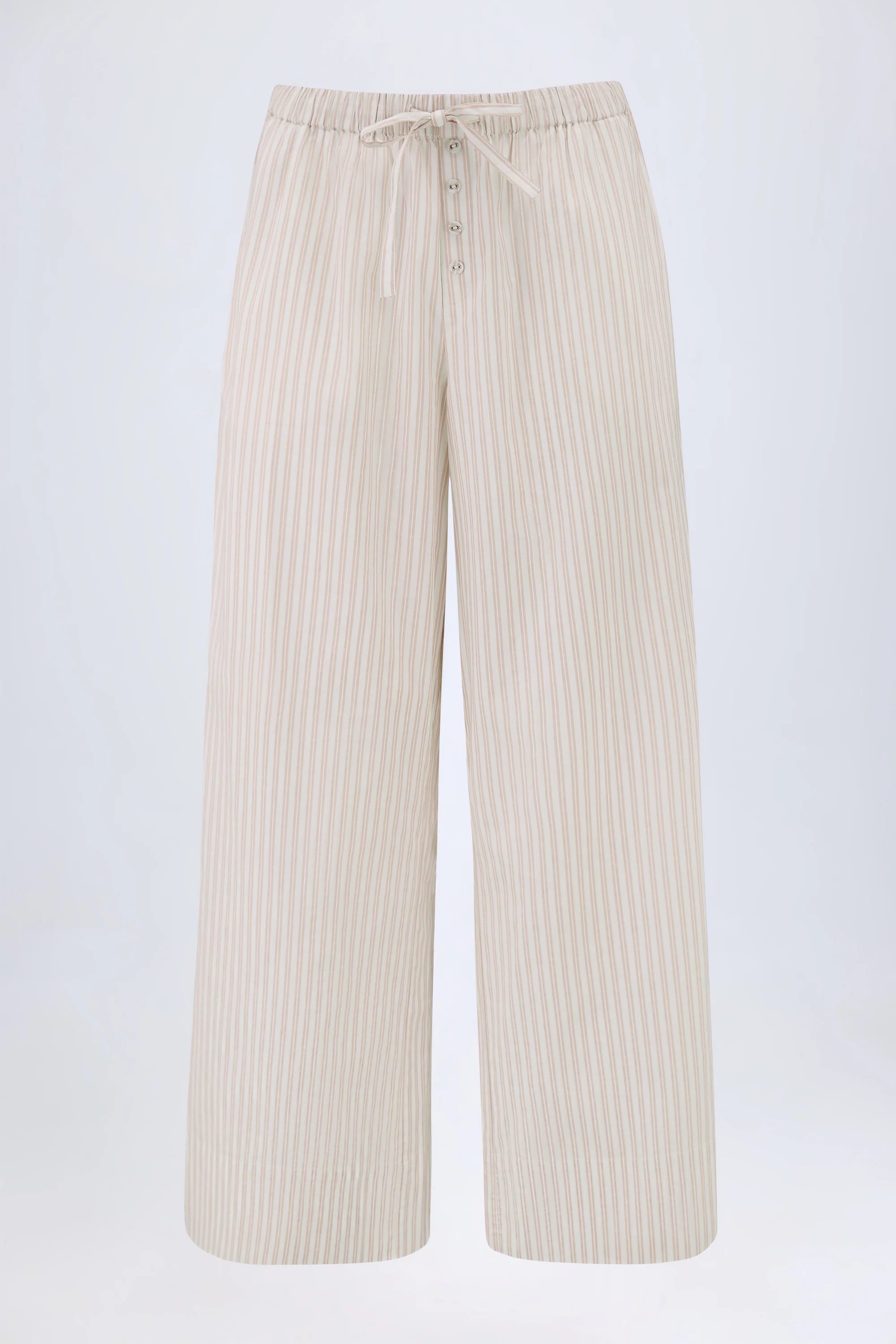 Wide-Leg Cotton-Poplin Trousers in Taupe Stripe