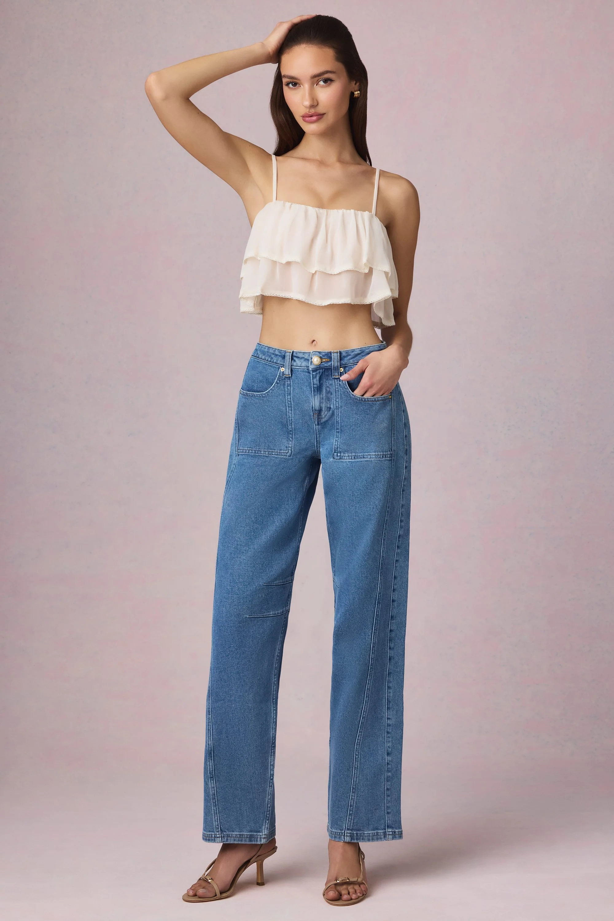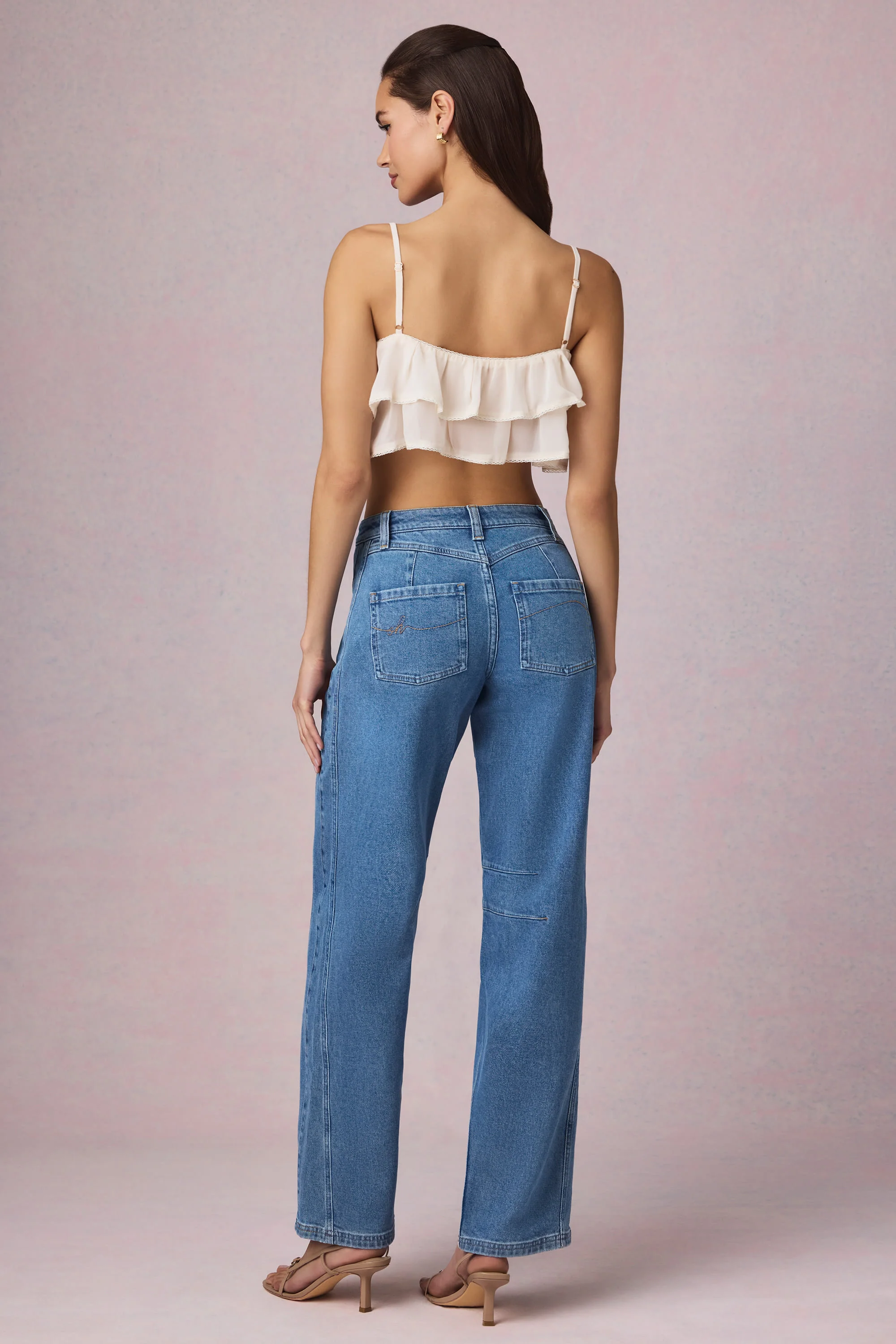 Mid-Rise Barrel-Leg Jeans in Mid-Blue Wash