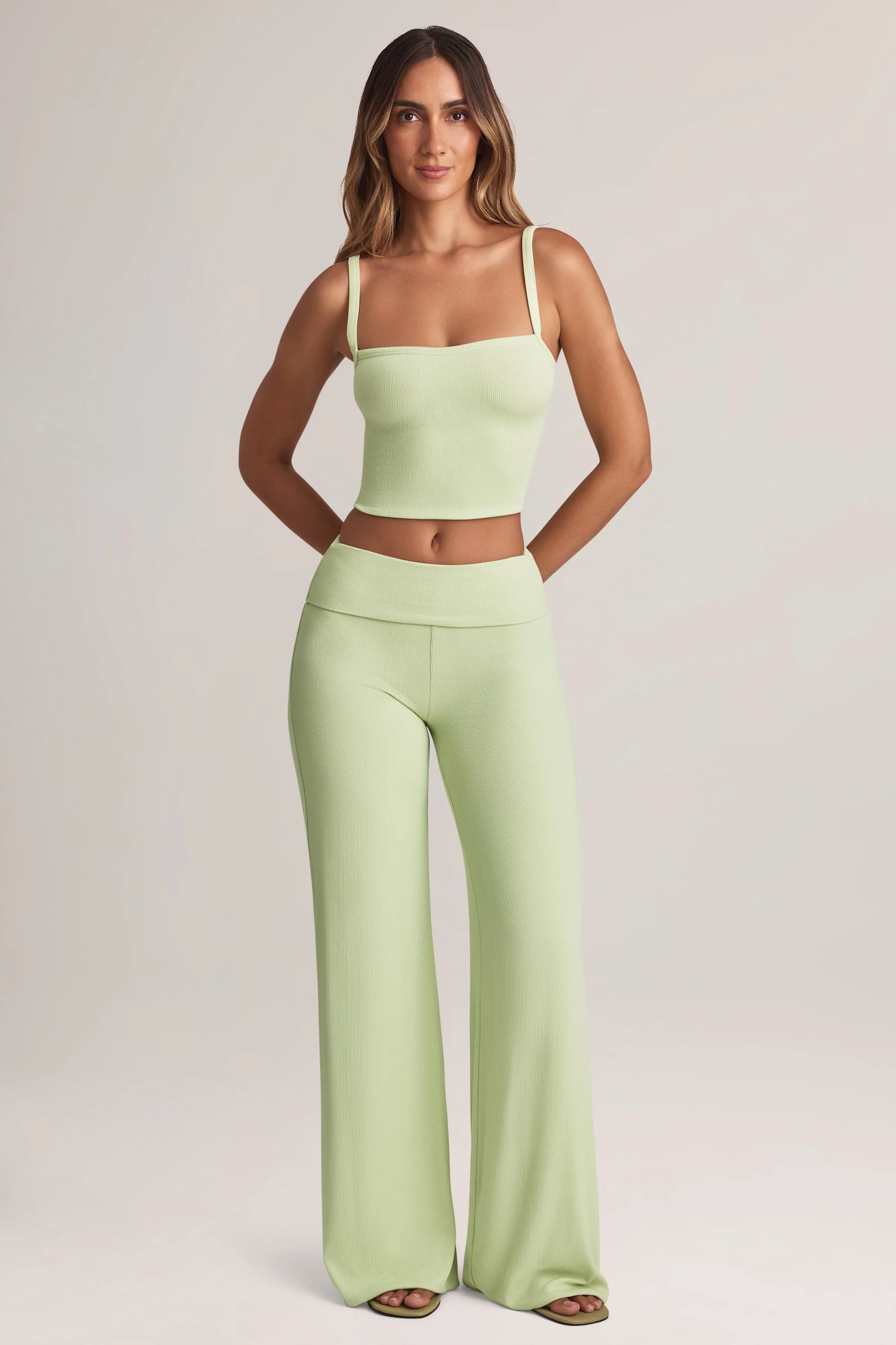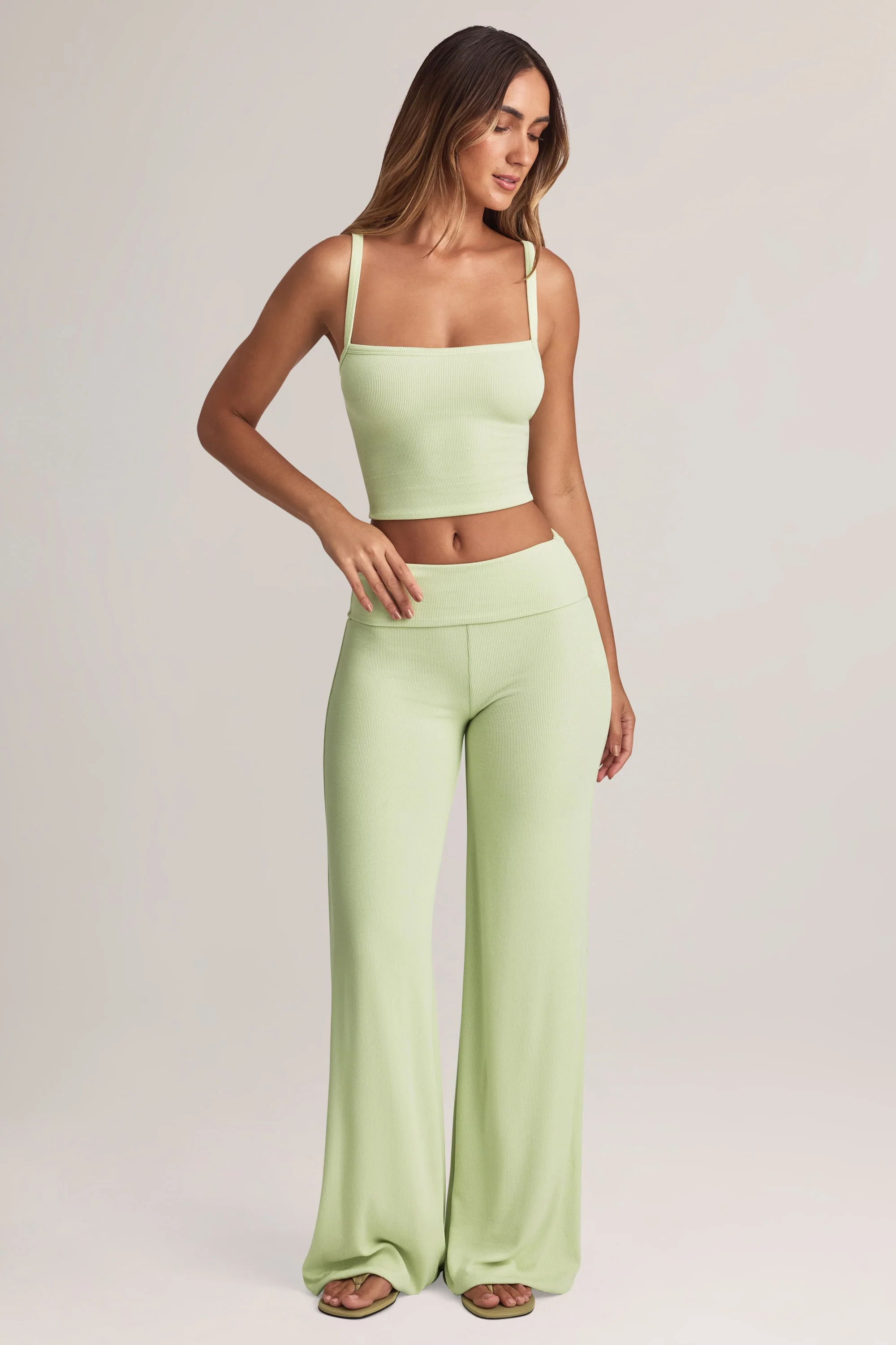 Modal Foldover Wide-Leg Trousers in Sage Green