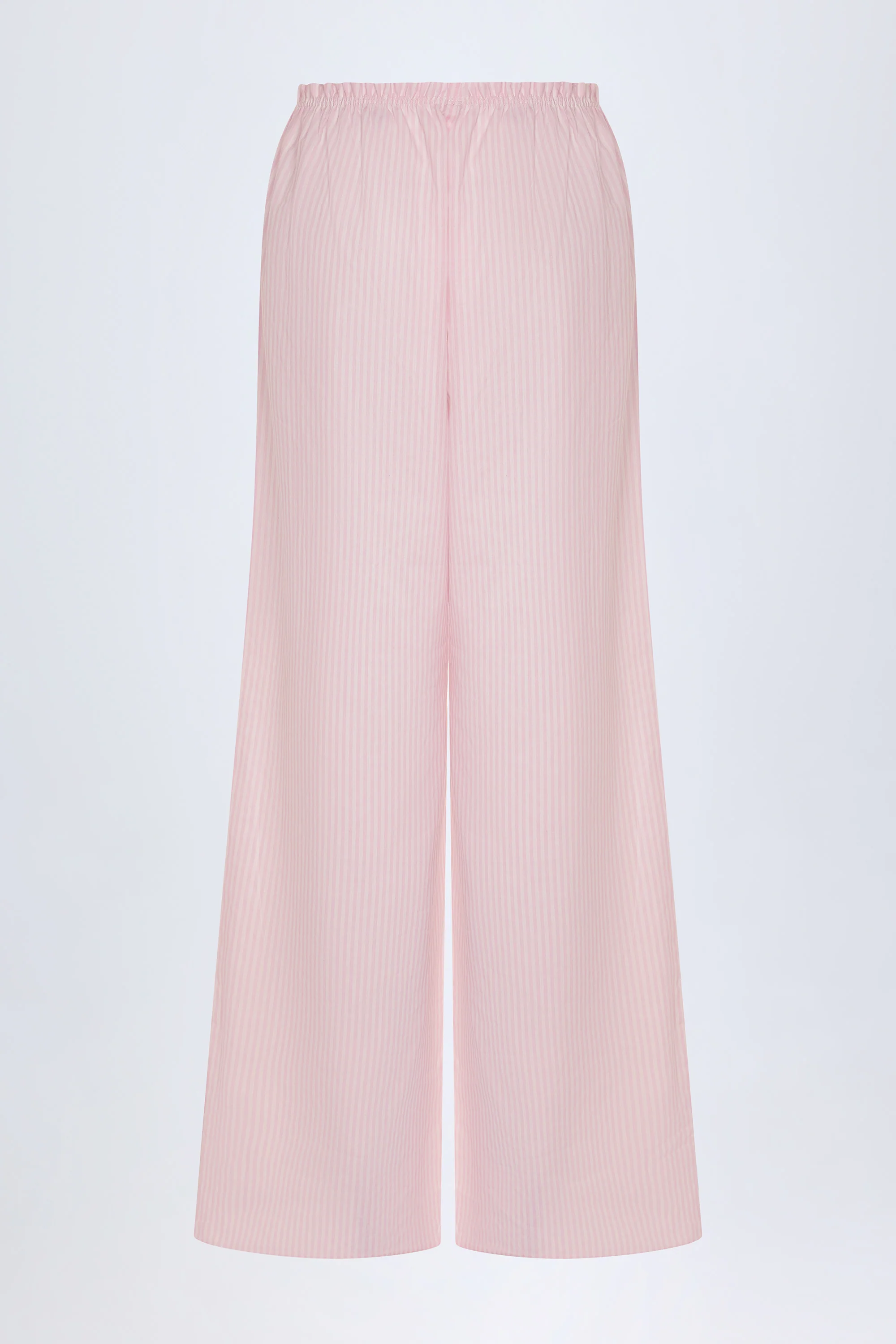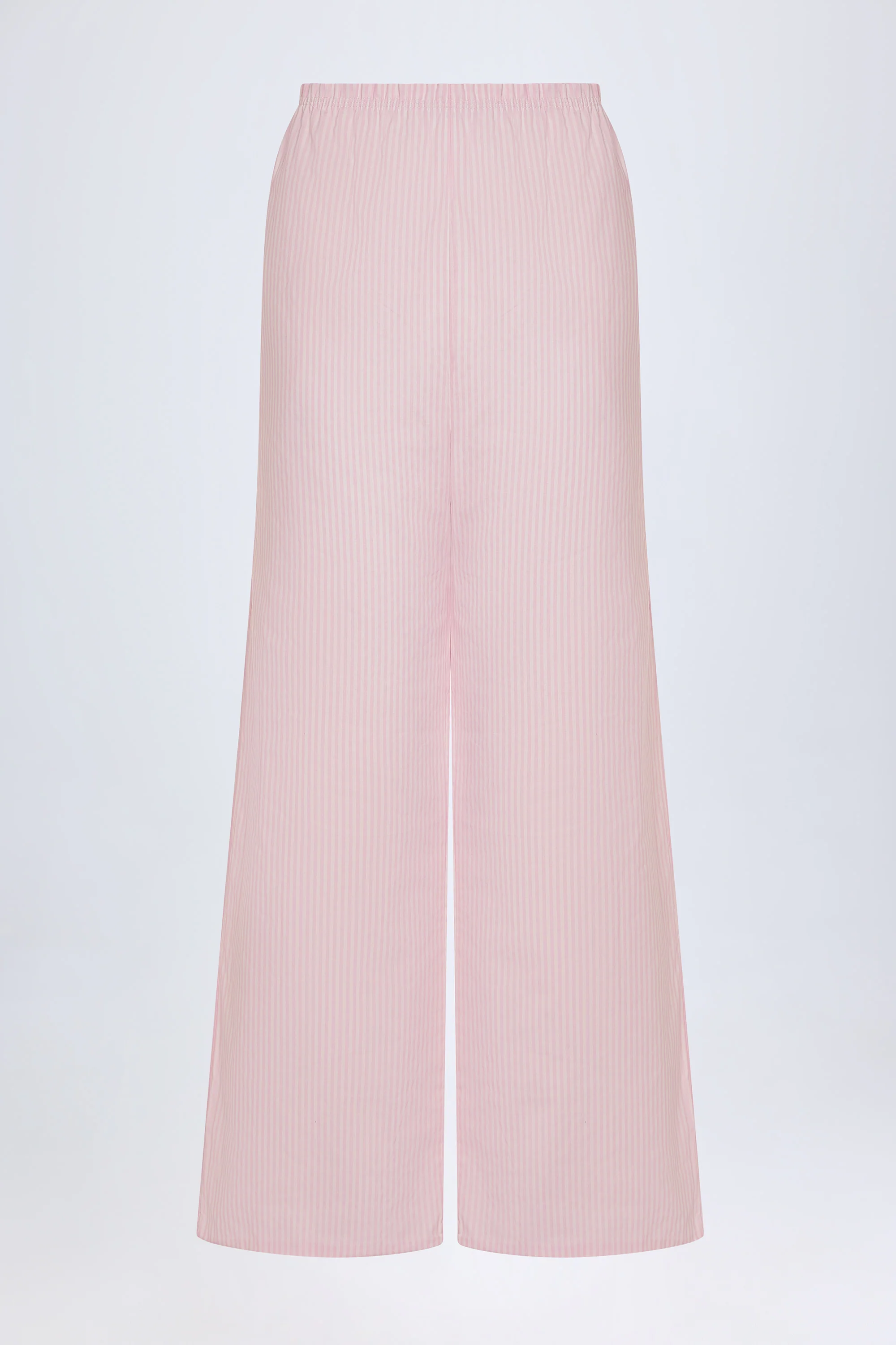 Wide-Leg Cotton-Poplin Trousers in Pink & White Stripe