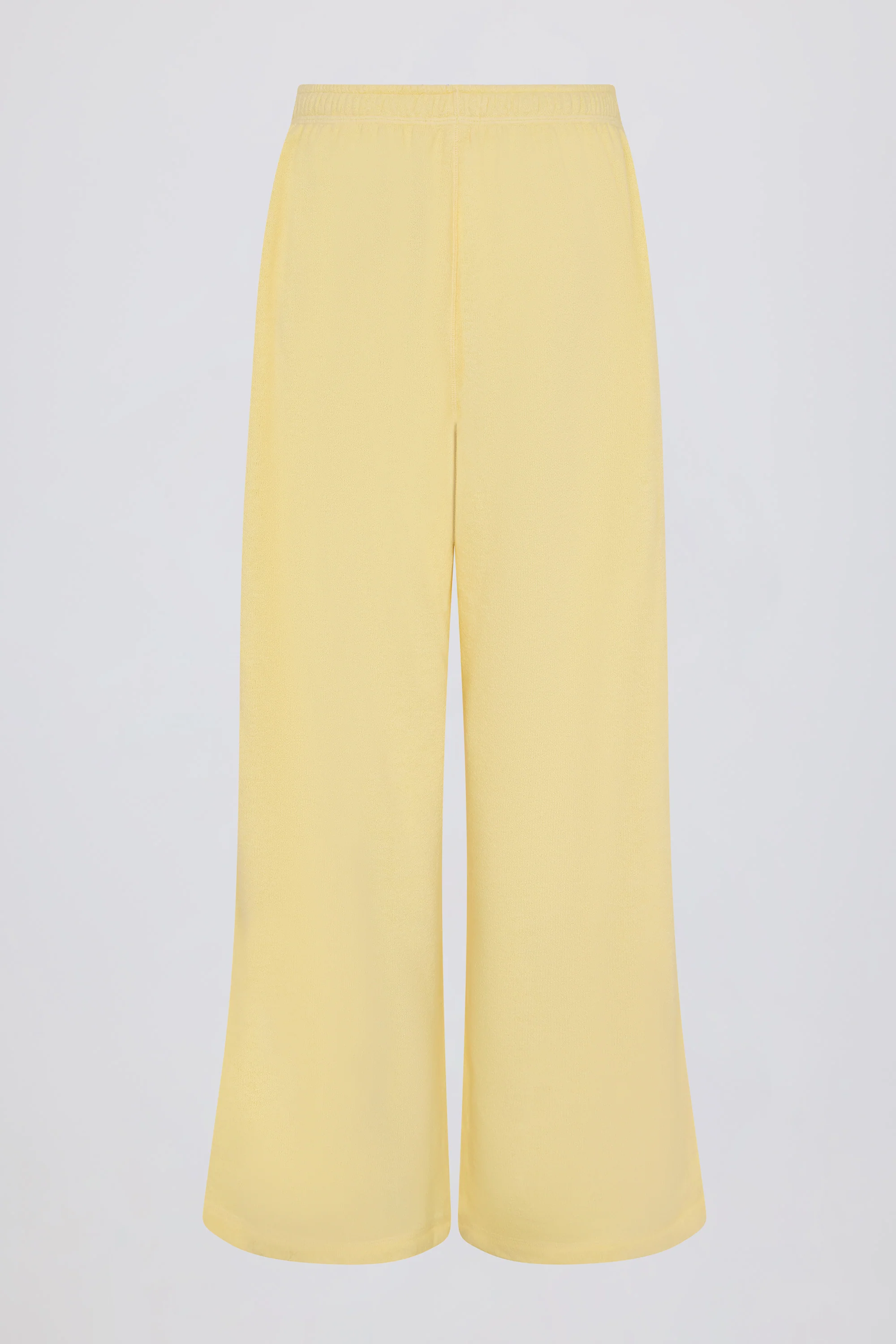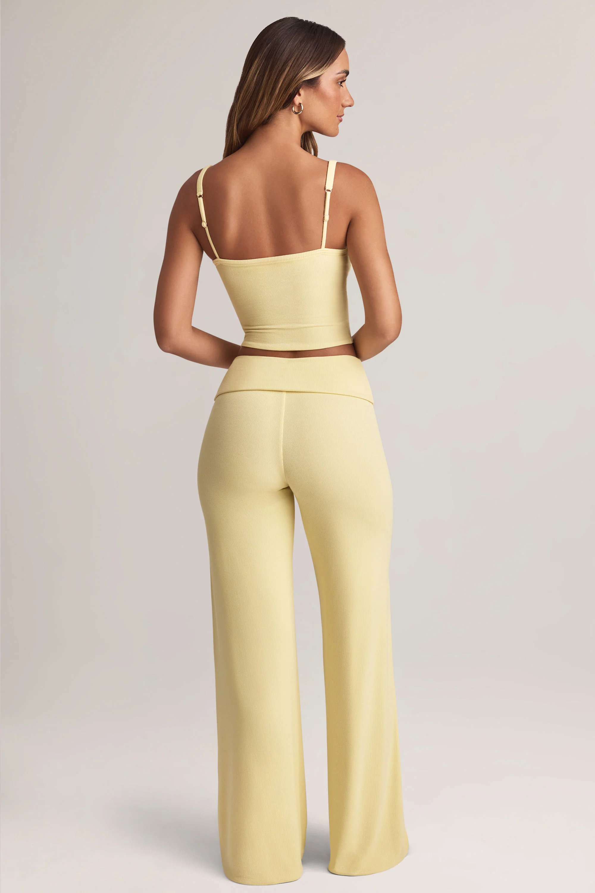 Modal Foldover Wide-Leg Trousers in Lemon Sherbet