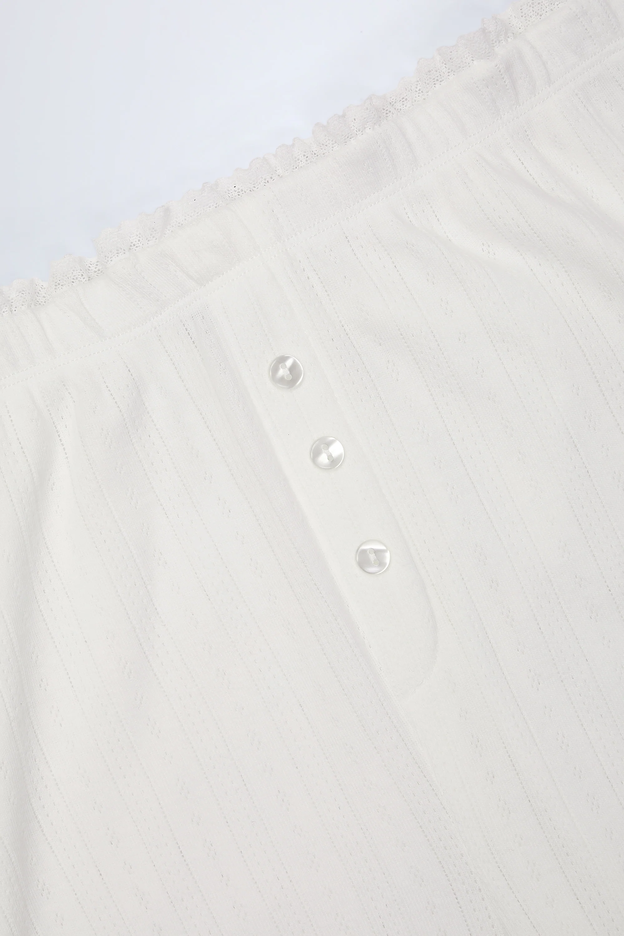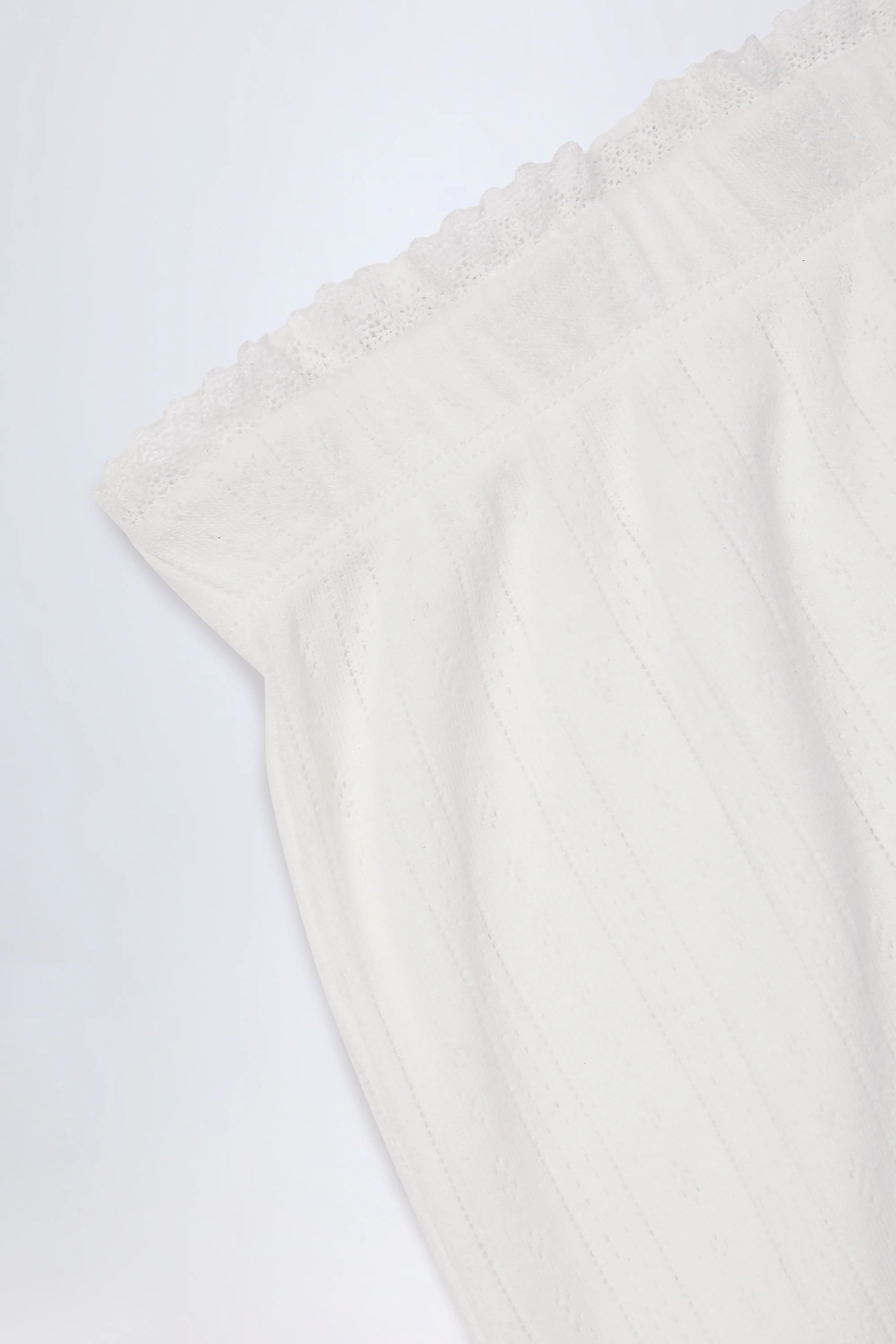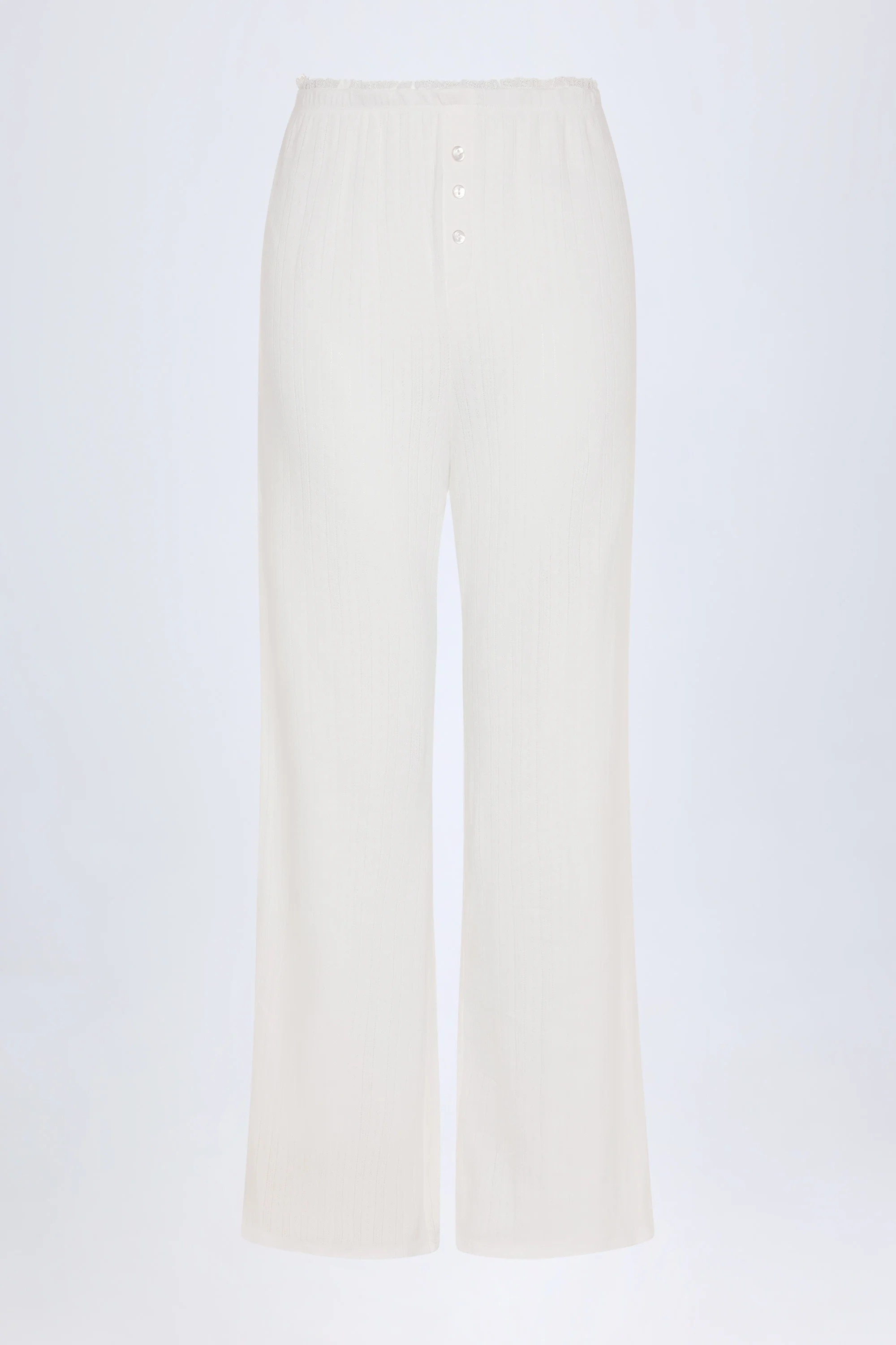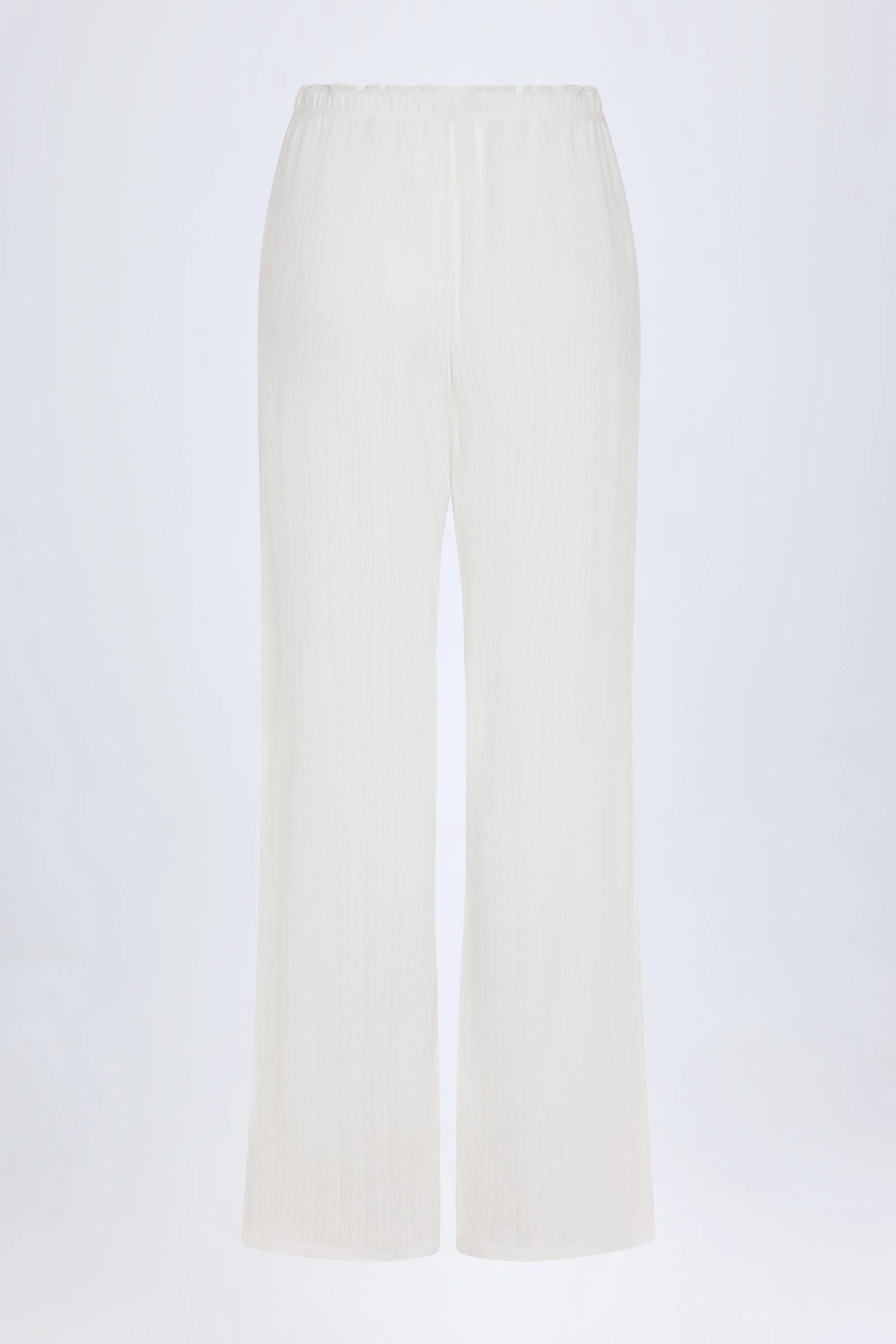 Pointelle Mid-Rise Straight-Leg Trousers in White