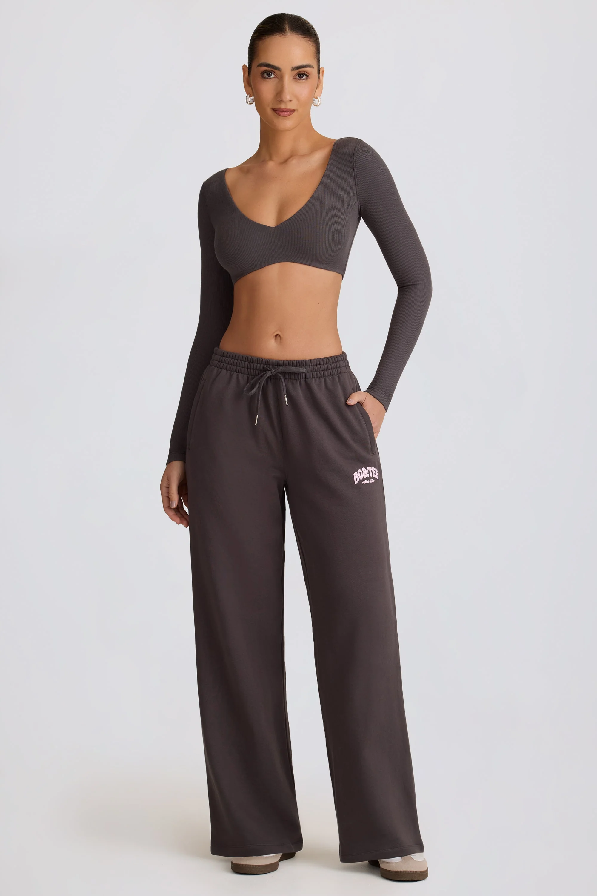 Mid-Rise Wide-Leg Joggers in Charcoal Grey