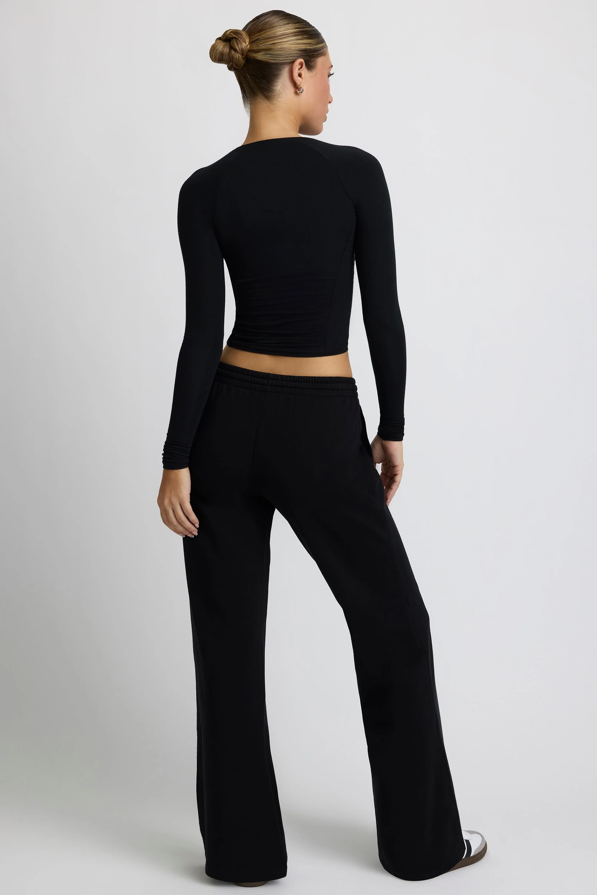 Brushed Jersey Wide-Leg Joggers in Ecru