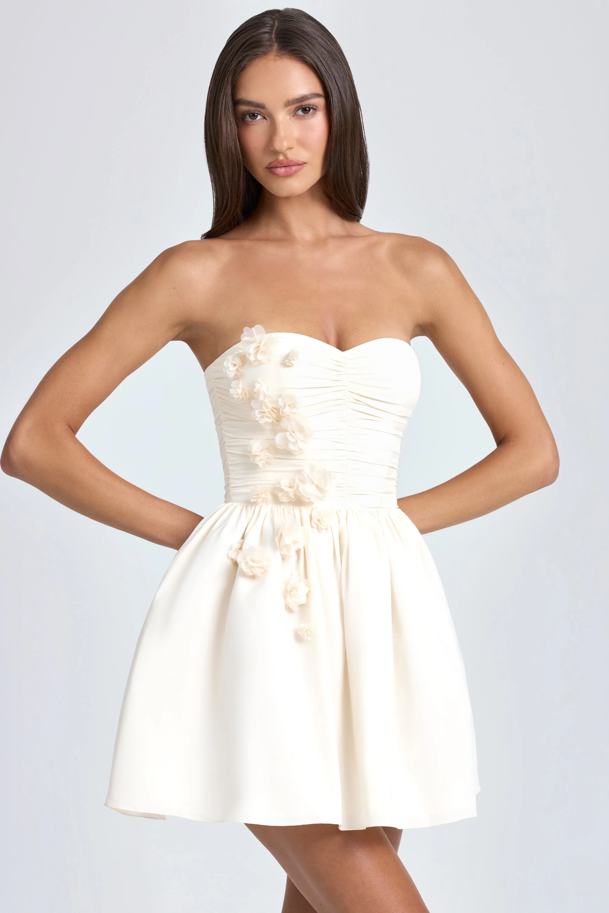 Bandeau Floral-Appliqué Corset Mini Dress in Ivory
