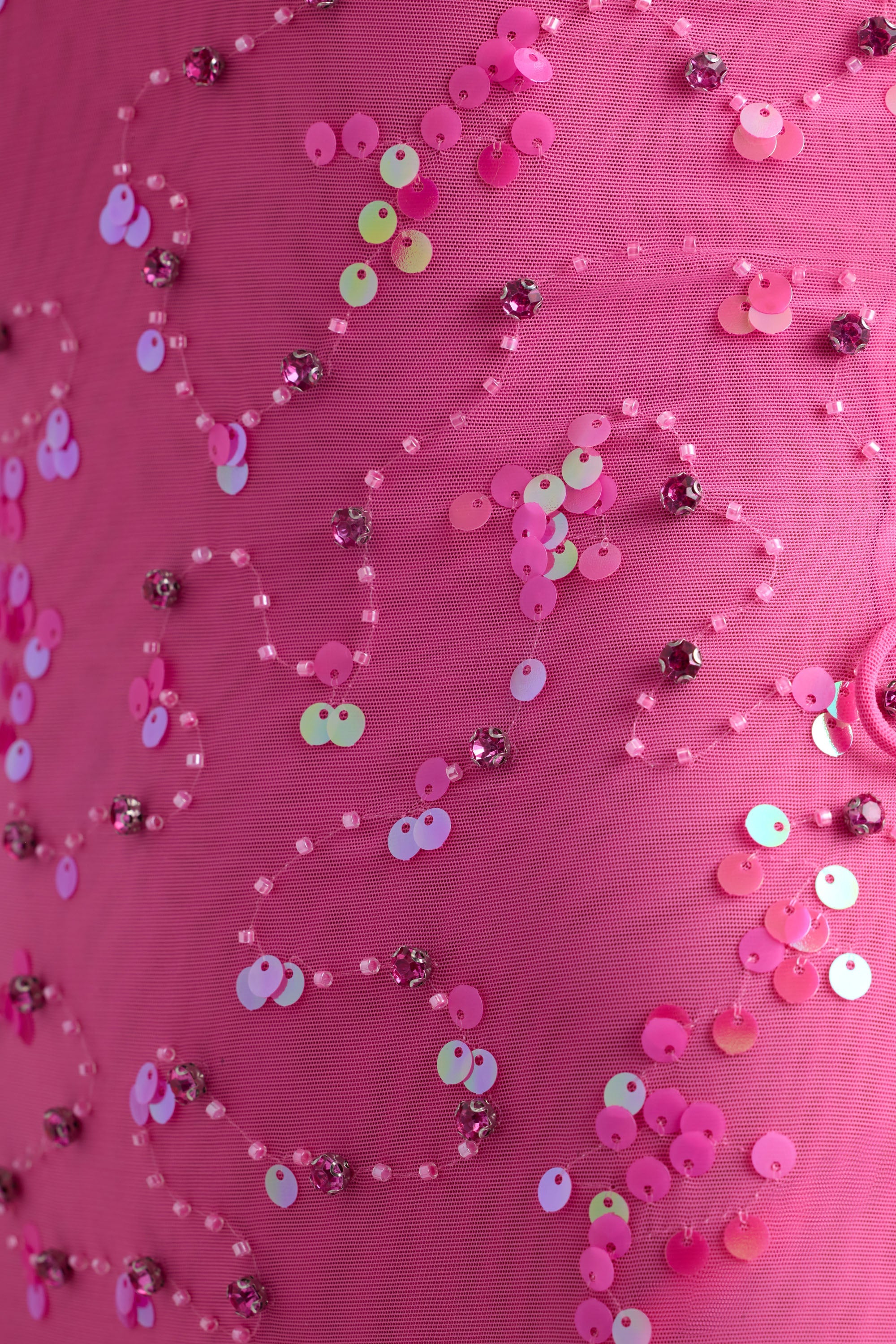 Embellished Lace-Up Mini Dress in Bubblegum Pink