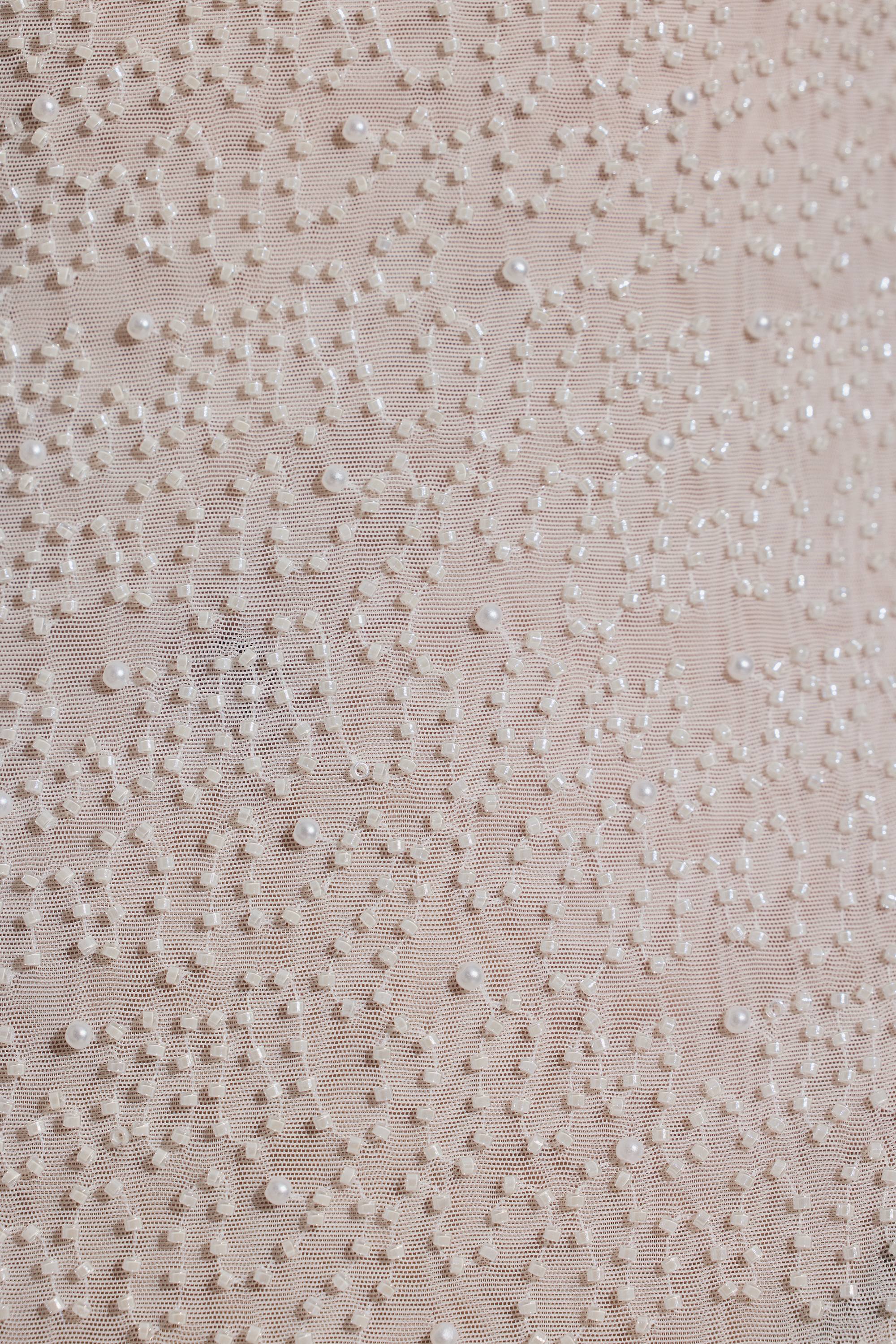 Pearl-Detail Cowl-Neck Micro Mini Dress in Pearl White
